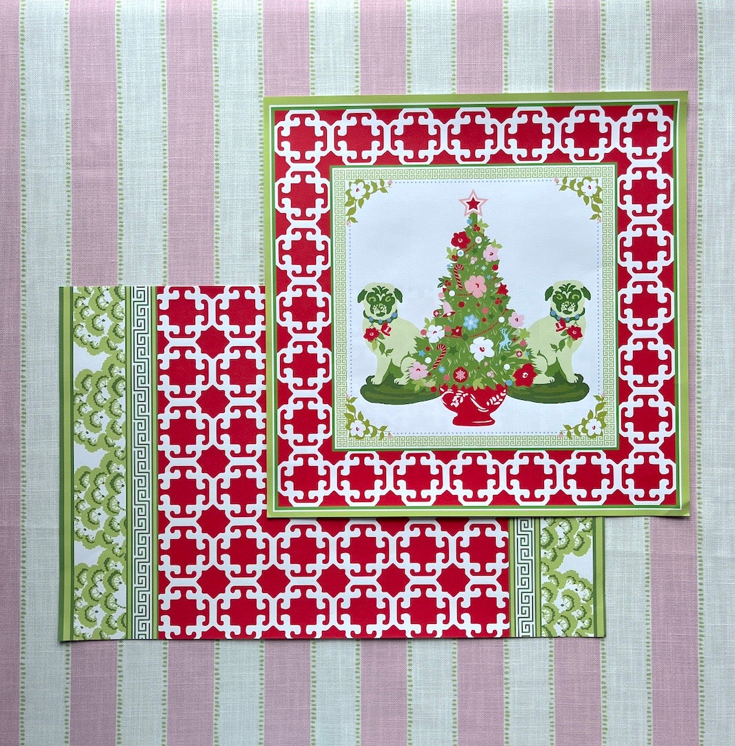 Jazz up your Christmas place settings with Madcap Cottage square pug-embellished paper placemats. Conveniently packaged in the form of placemat "pads," these made-in-America prints-packed table toppers will surely become entertaining essentials. A Madcap Cottage exclusive.