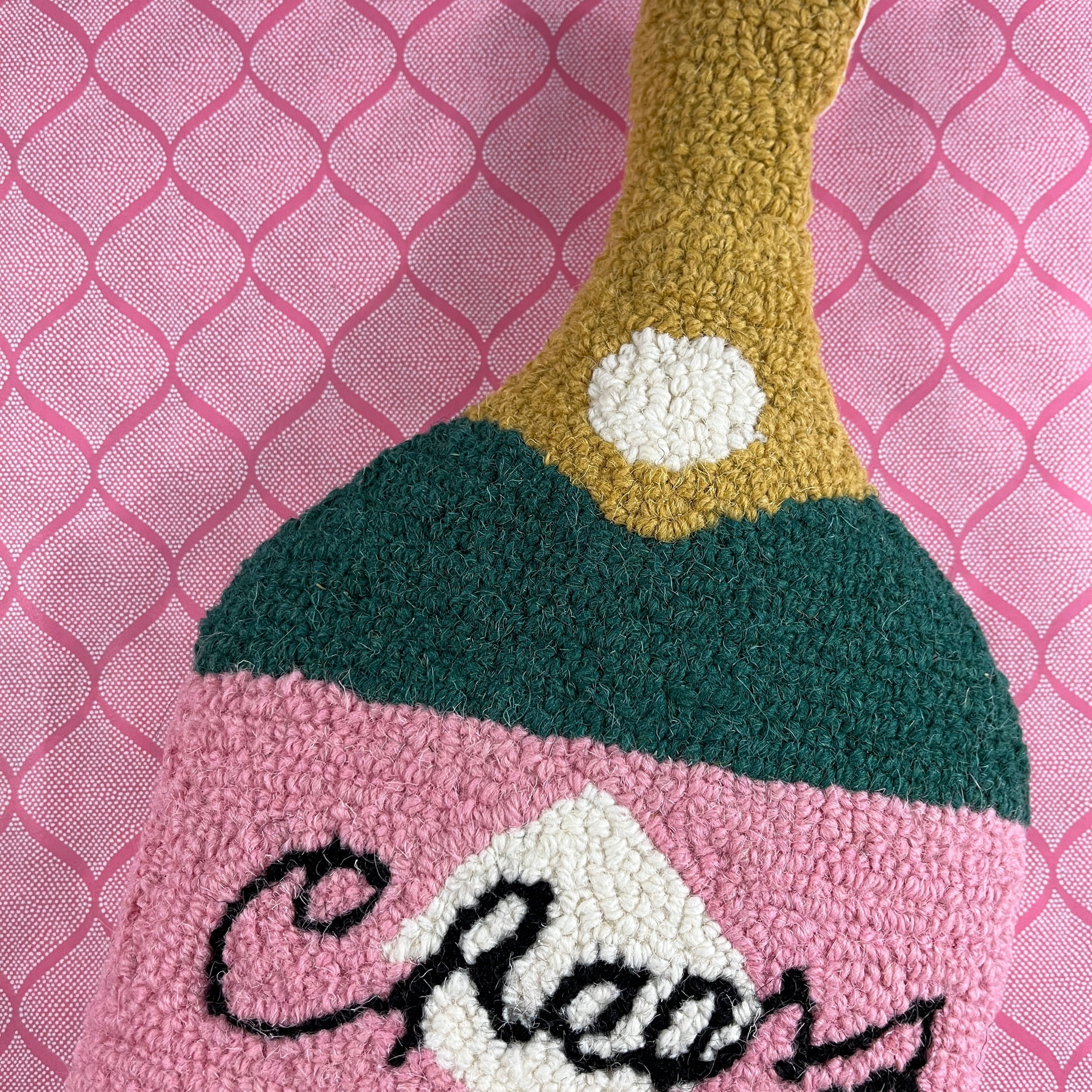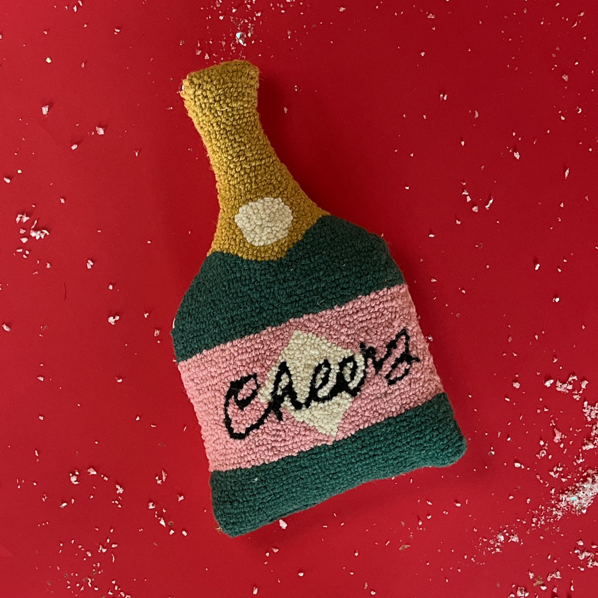 Cheers, cheers! For a thousand years! We love this hand-hooked wool pillow that delivers just the right amount of bubbly holiday spirit. Utterly unique. Pop a few and watch the adventures unfold.