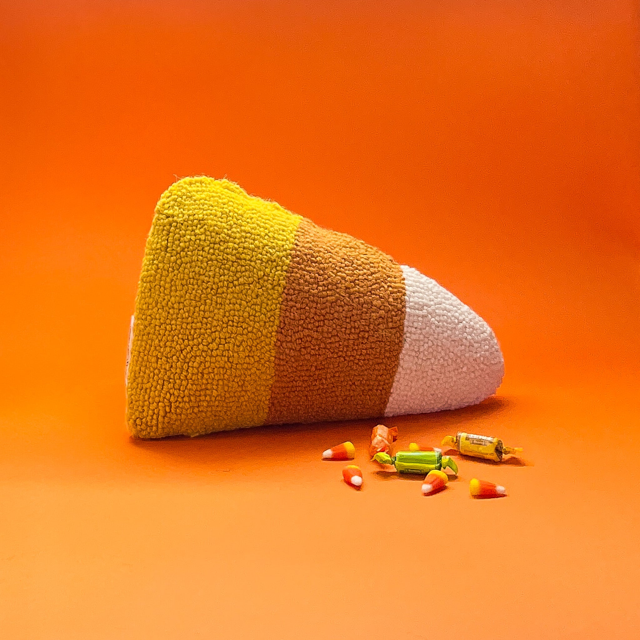 Liquor might be quicker but candy's just dandy in our book. Get your sugar fix on with this whimsical hooked-wool Halloween throw pillow shaped like a candy corn plucked from someone's Halloween candy stash.