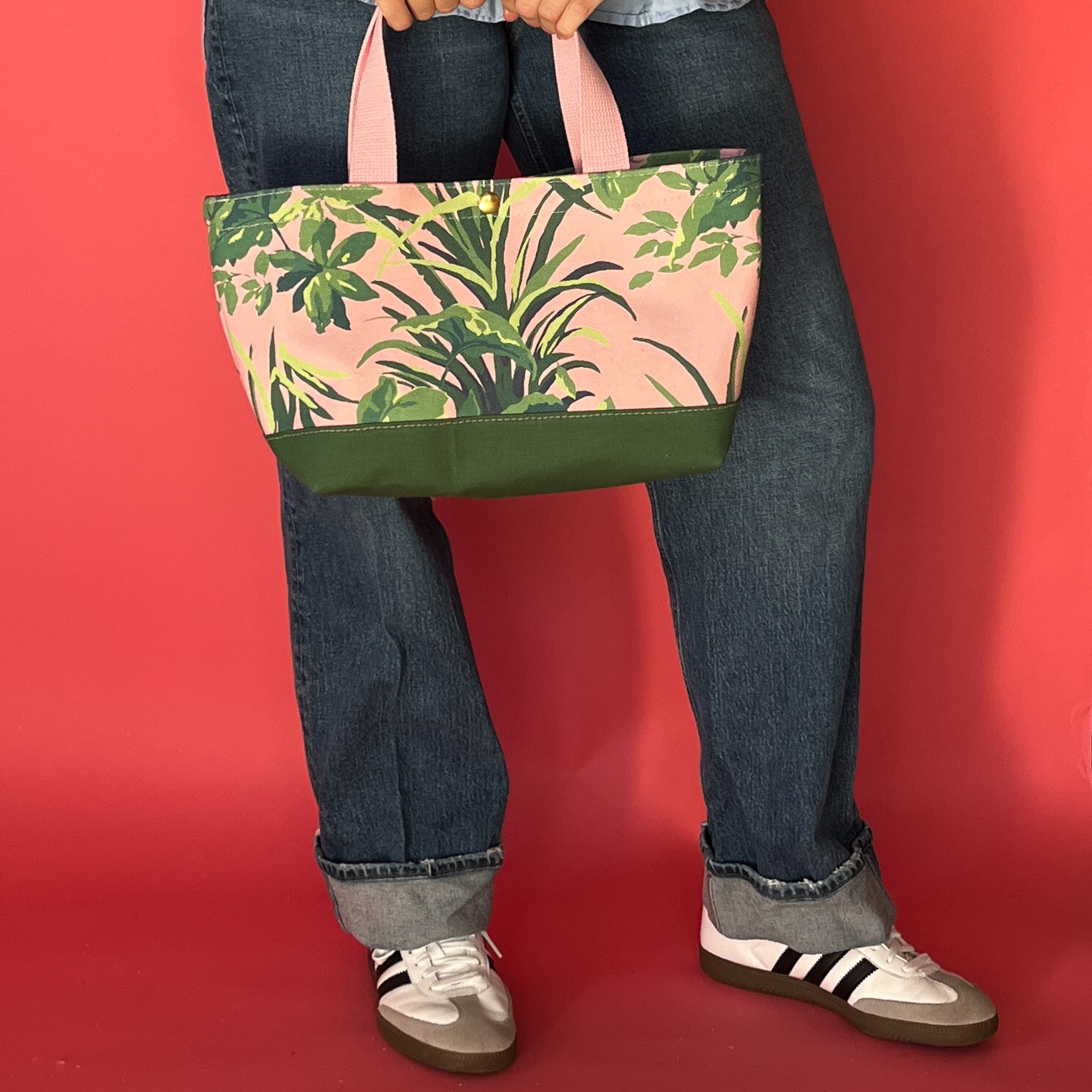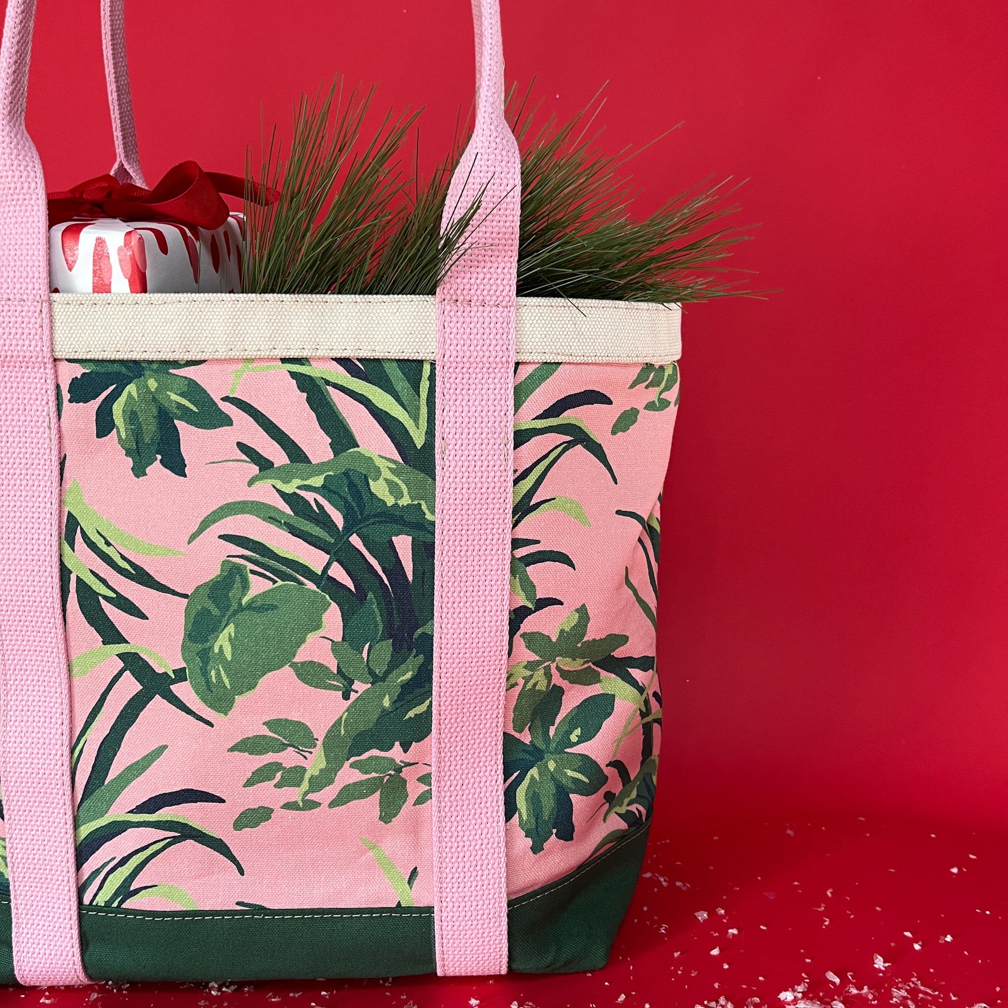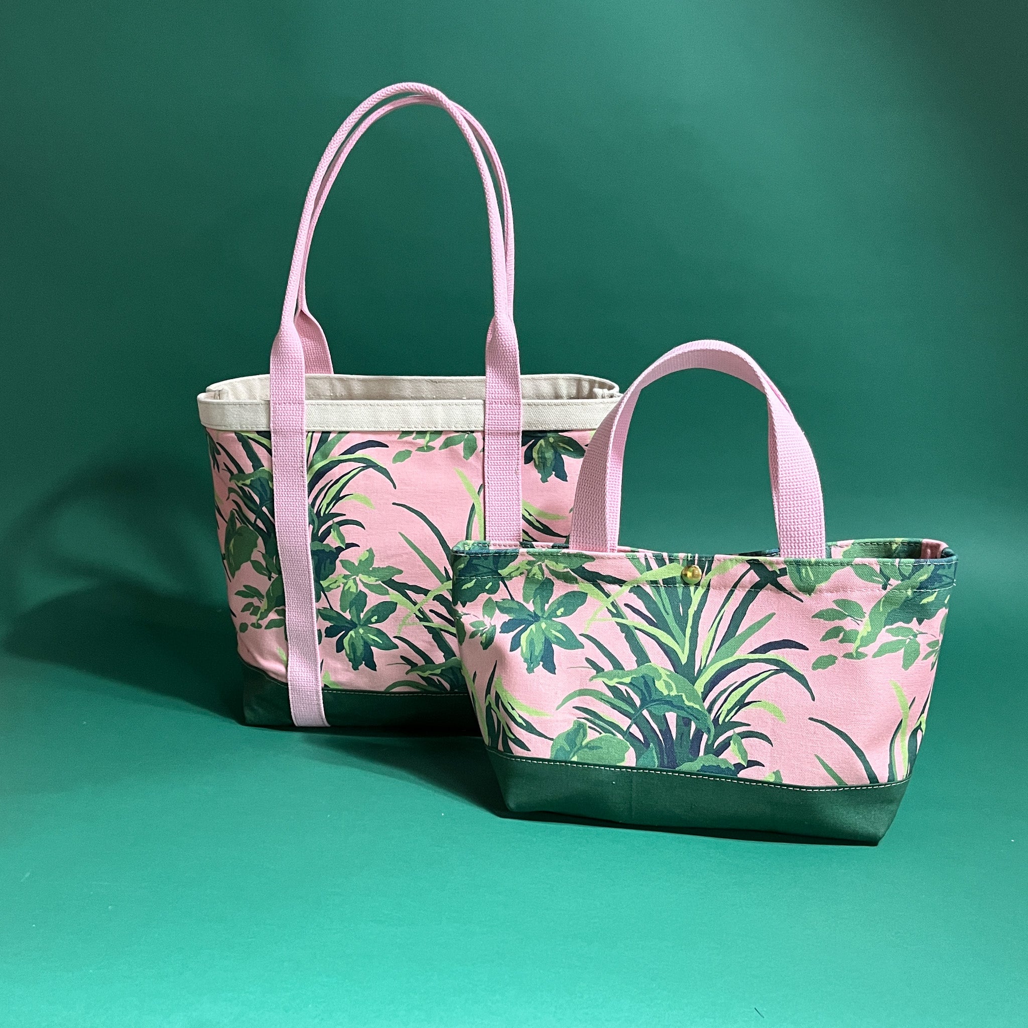 Jungle Road PInk and Green Canvas Tote Bag, Large and Small