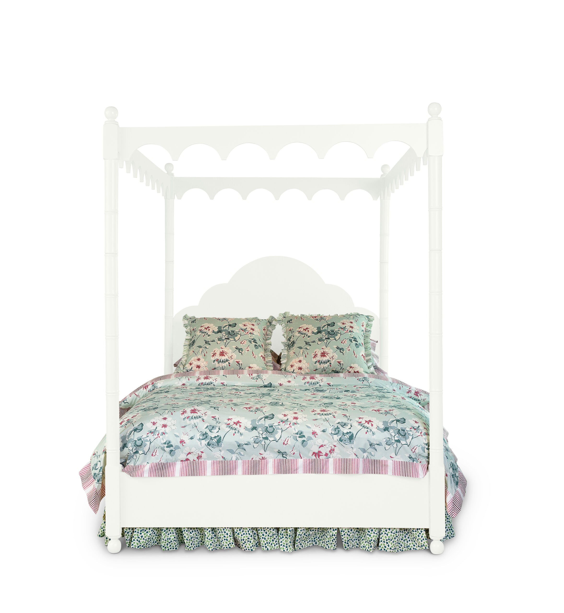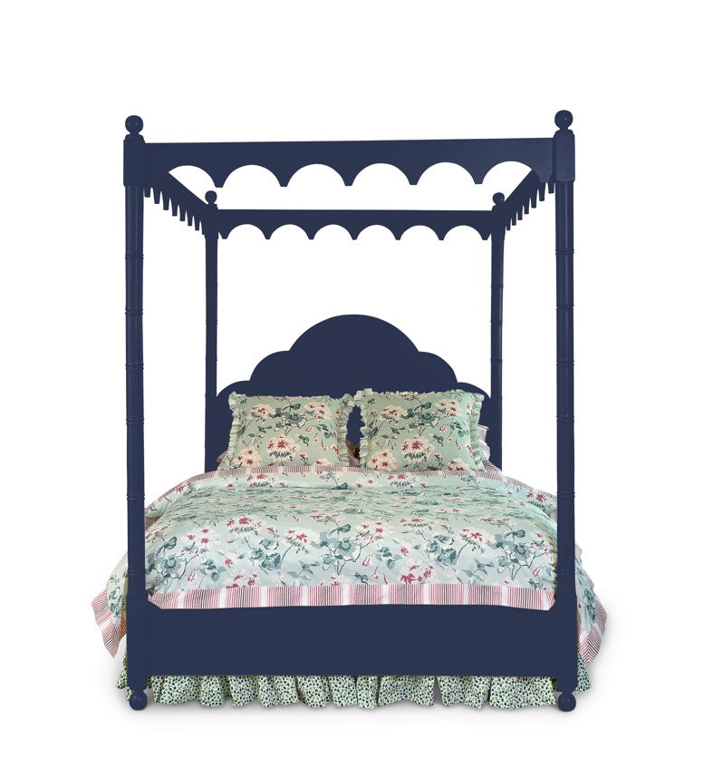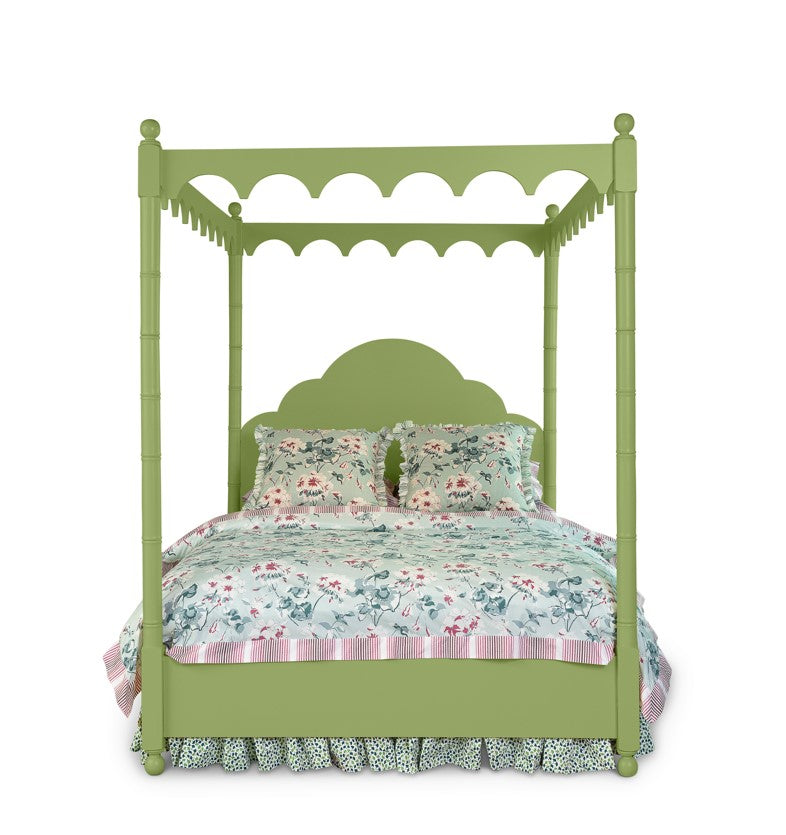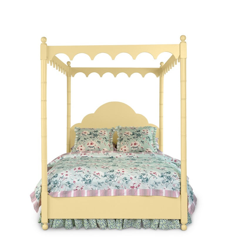 Say hello to the brilliant Strawberry Hill Custom Canopy Bed! Inspired by the Madcap gents' jaunt to a whimsical country estate just outside of London, the brilliant Strawberry Hill Canopy Bed features hand-carved faux-bamboo posts and a scalloped canopy and headboard. Available in Twin XL, Queen, and King. Painted rails included. Assembly required.