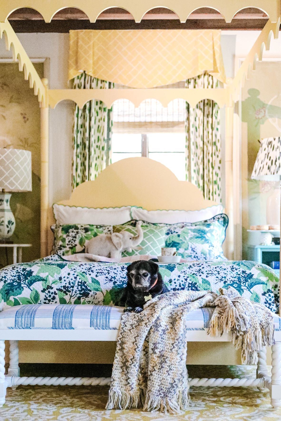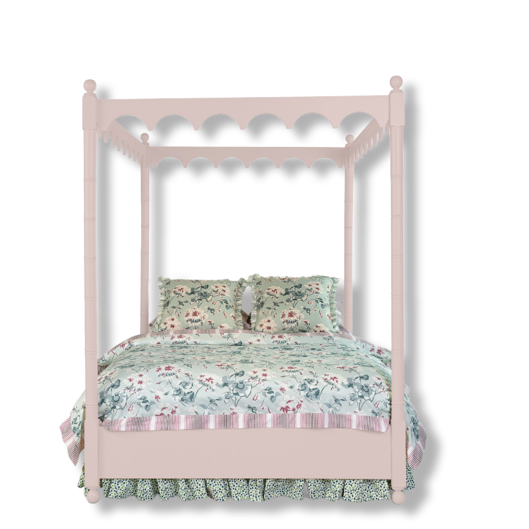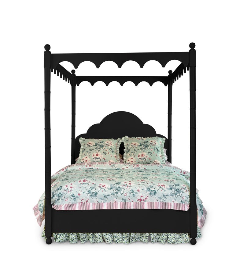Say hello to the brilliant Strawberry Hill Custom Canopy Bed! Inspired by the Madcap gents' jaunt to a whimsical country estate just outside of London, the brilliant Strawberry Hill Canopy Bed features hand-carved faux-bamboo posts and a scalloped canopy and headboard. Available in Twin XL, Queen, and King. Painted rails included. Assembly required.