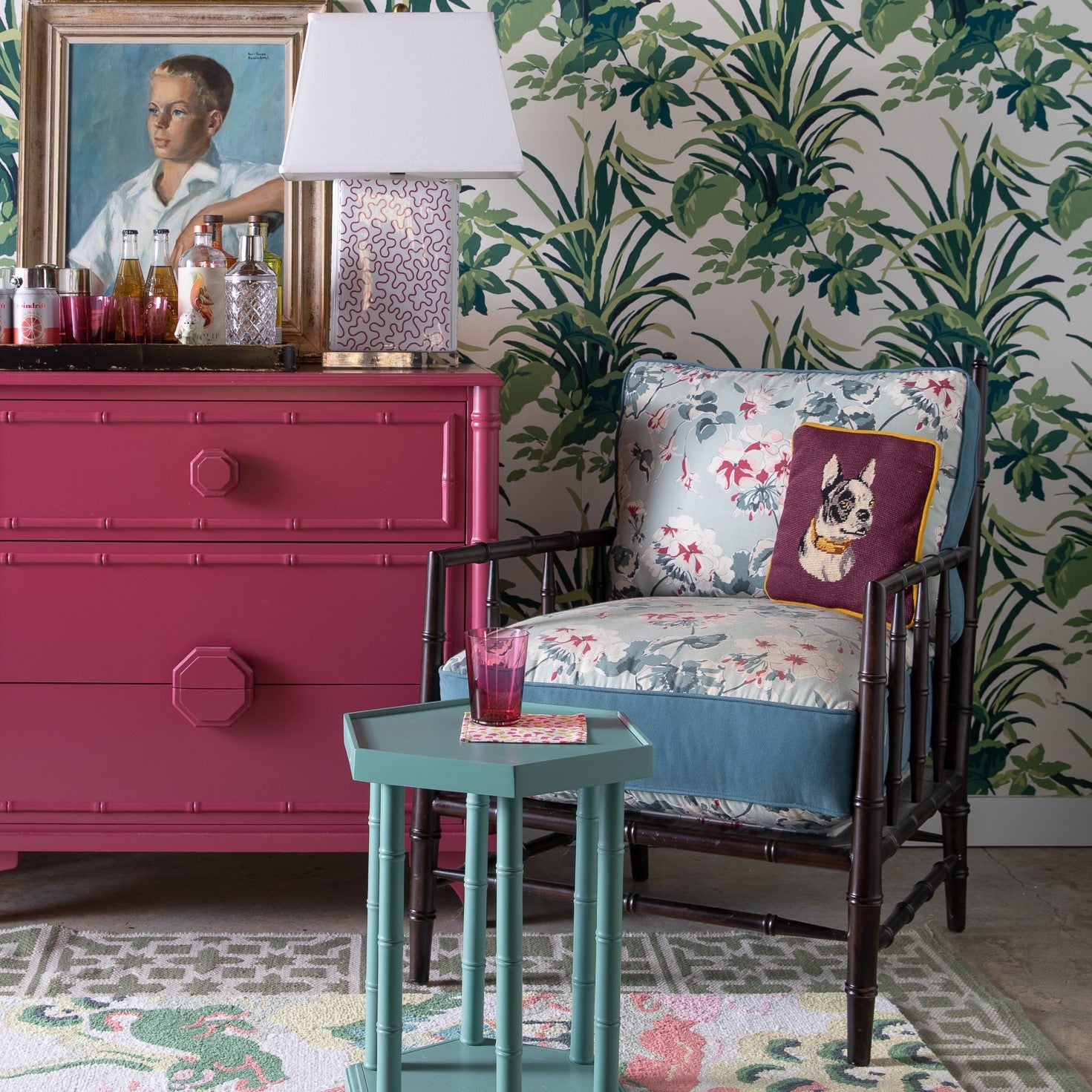 Madcap Cottage adores pink and green - a classic combination that works in a multitude of ways. We've got plenty of options for you - from striking Temple Garden pink and green chinoiserie fabric, to our Bahama Court pink and green wallpaper and more!