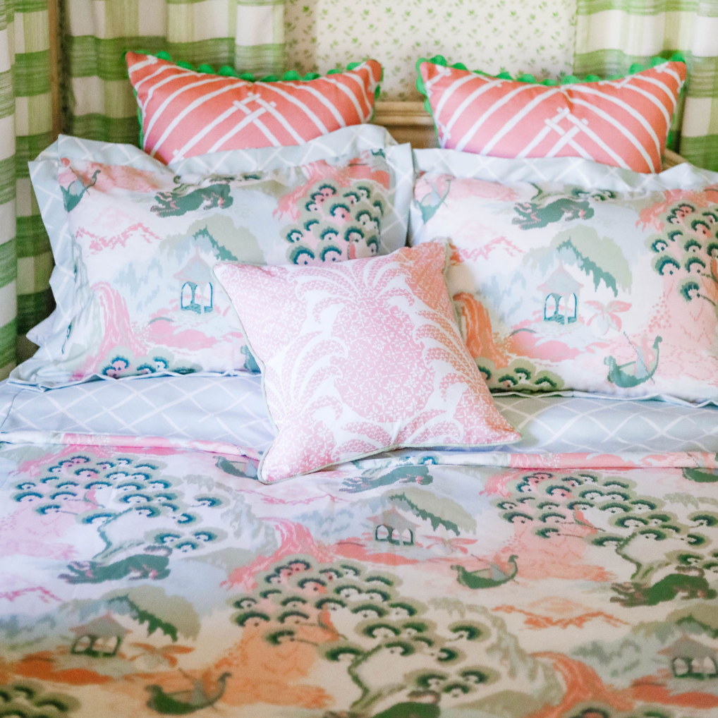 Madcap Cottage adores pink and green - a classic combination that works in a multitude of ways. We've got plenty of options for you - from striking Temple Garden pink and green chinoiserie fabric, to our Bahama Court pink and green wallpaper and more!