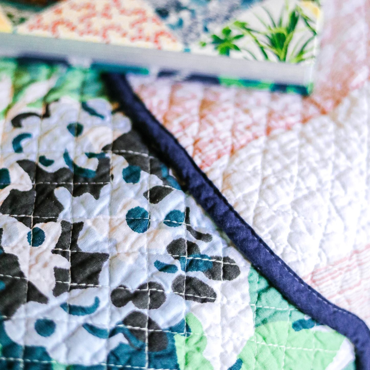 Quilt stitching and welt detail of the Bar Harbor 3pc reversible bed set