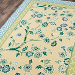 Crafted of hard-wearing wool, the yellow and blue rug’s timeless Chinoiserie-inspired pattern of peony blossoms packs a visual punch that works in both traditional and modern settings. Form. Function. Fabulous.
