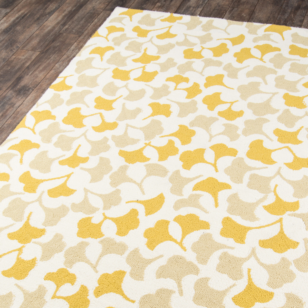 Timeless gingko wool yellow and taupe leaves spring to life in this hard-wearing scatter rug that mixes multiple shades of a single color to perfection. Terrific for any space that demands a lot of “look” paired with function this is a low-maintenance rug made from wool. Form. Function. Fabulous.