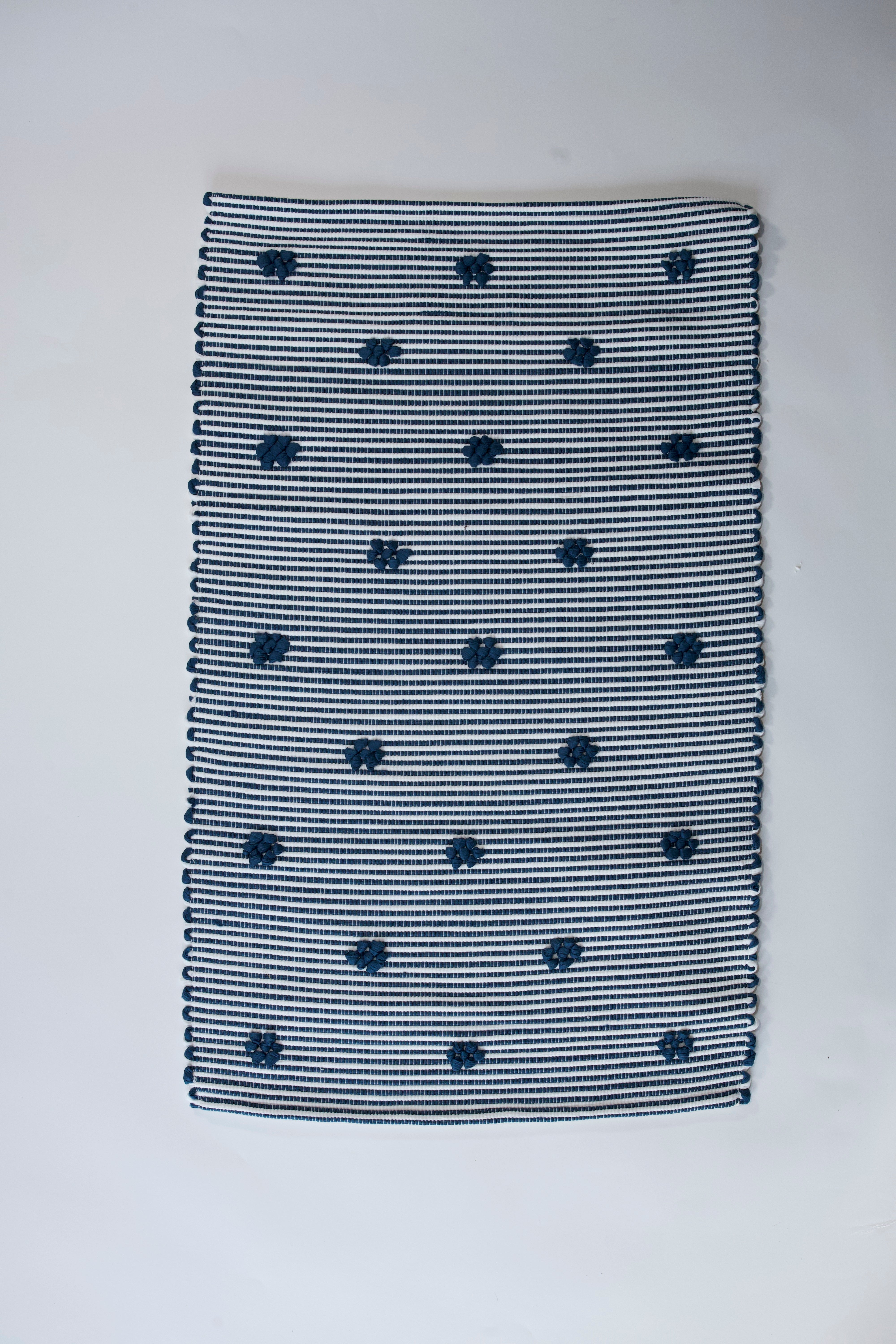 Handcrafted in Portugal of recycled cotton to Madcap Cottage's exclusive designs, our Daisies blue accent rug will bring just the right amount of high-function panache to any floor in your home. Plus, she is machine washable and makes the perfect bath math too! Form and function--that's how we roll.