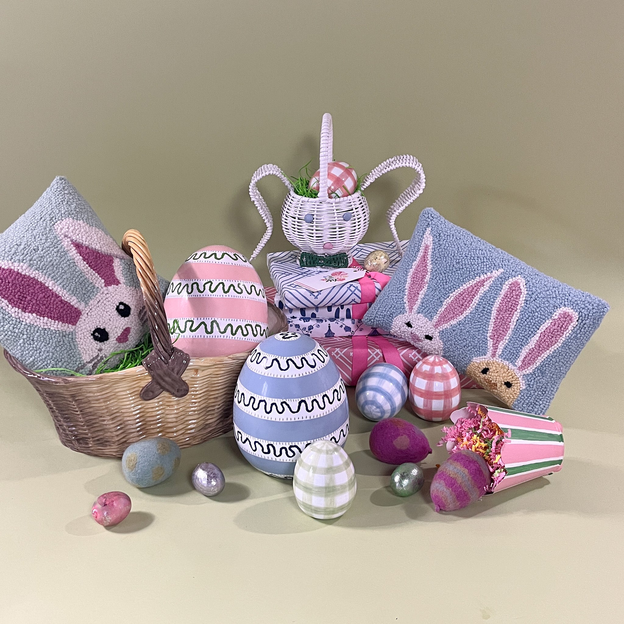 Pink Hooked Wool 18" x 12" Topiary Pillow