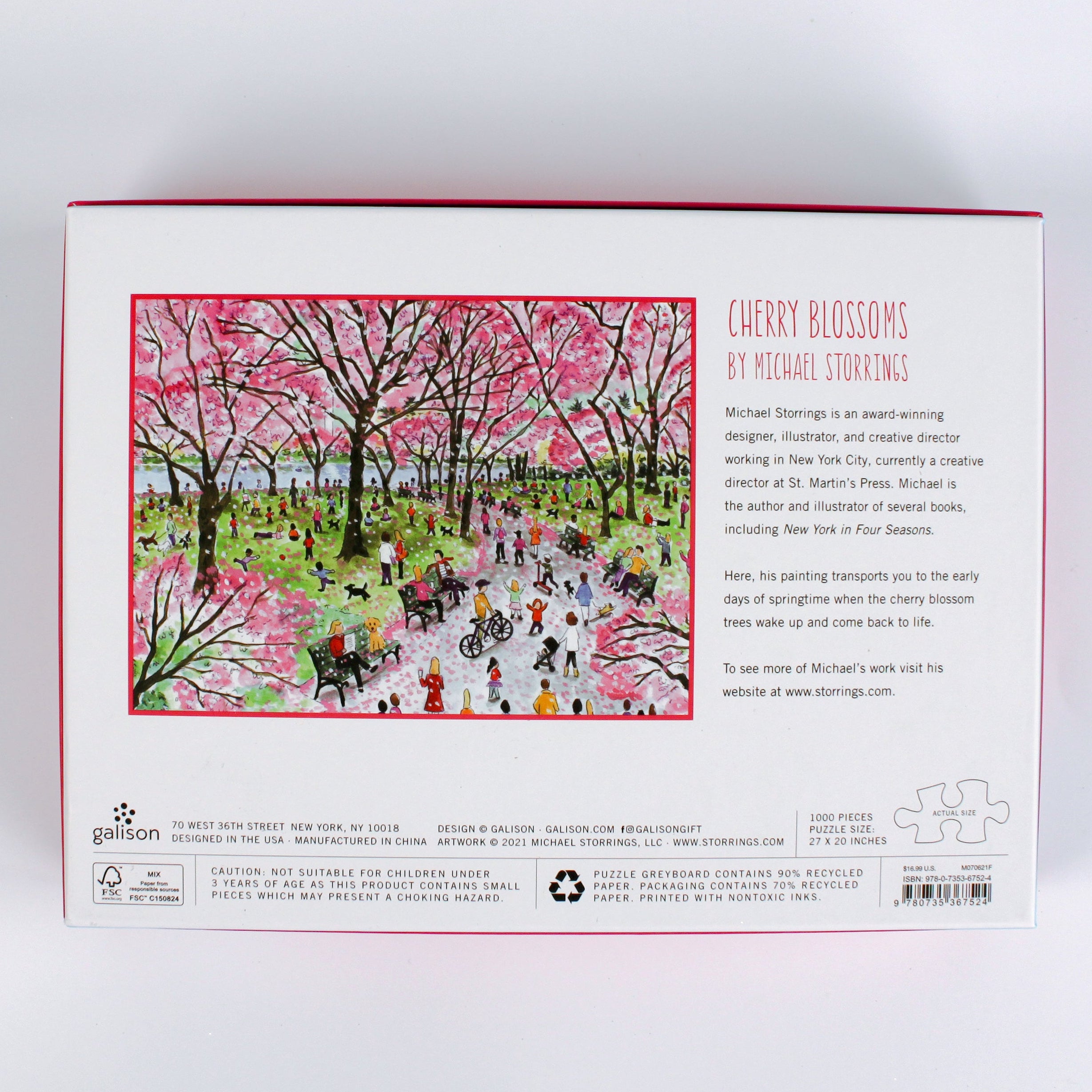 Celebrate Spring in our Nation's Capital with this 1,000-piece, 27"L x 20"W puzzle depicting the Cherry trees that ring the Tidal Basin in full bloom. D.C. never looked so good! Or so tidy.