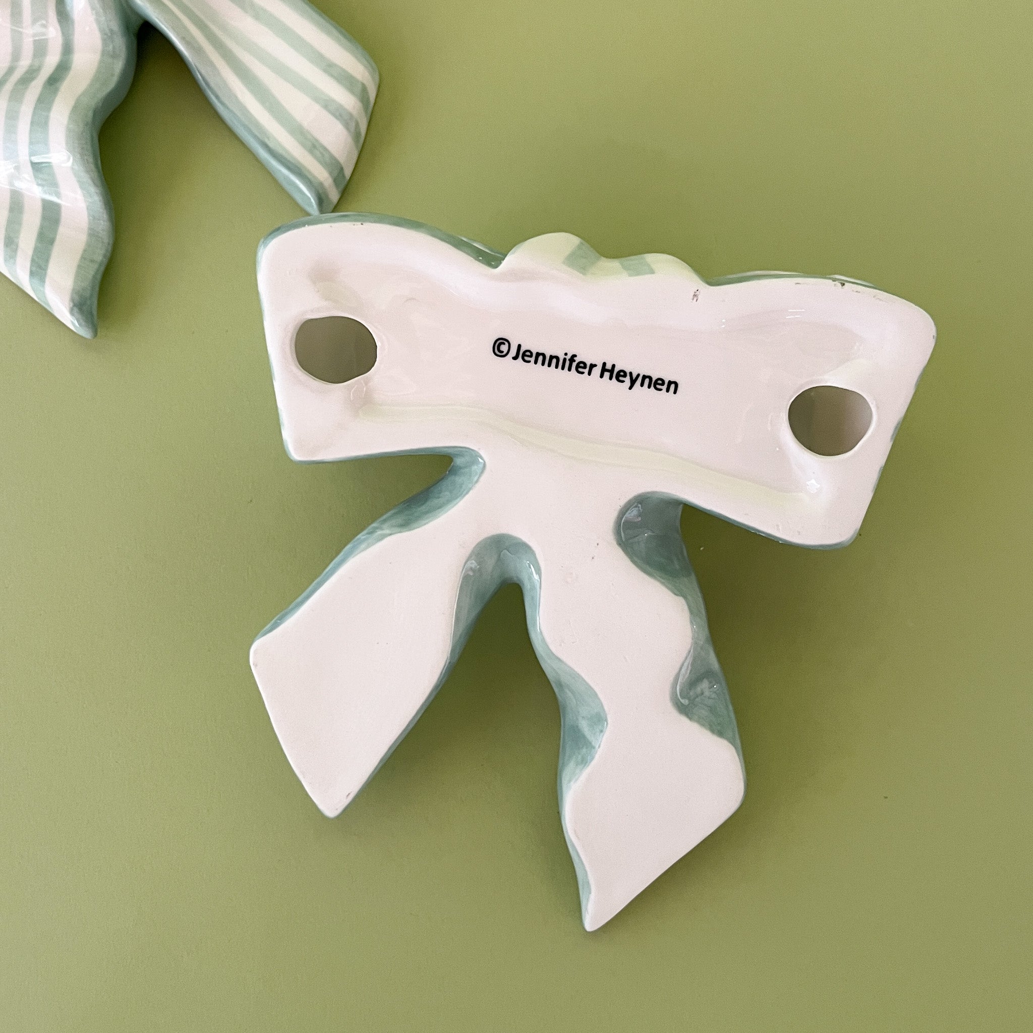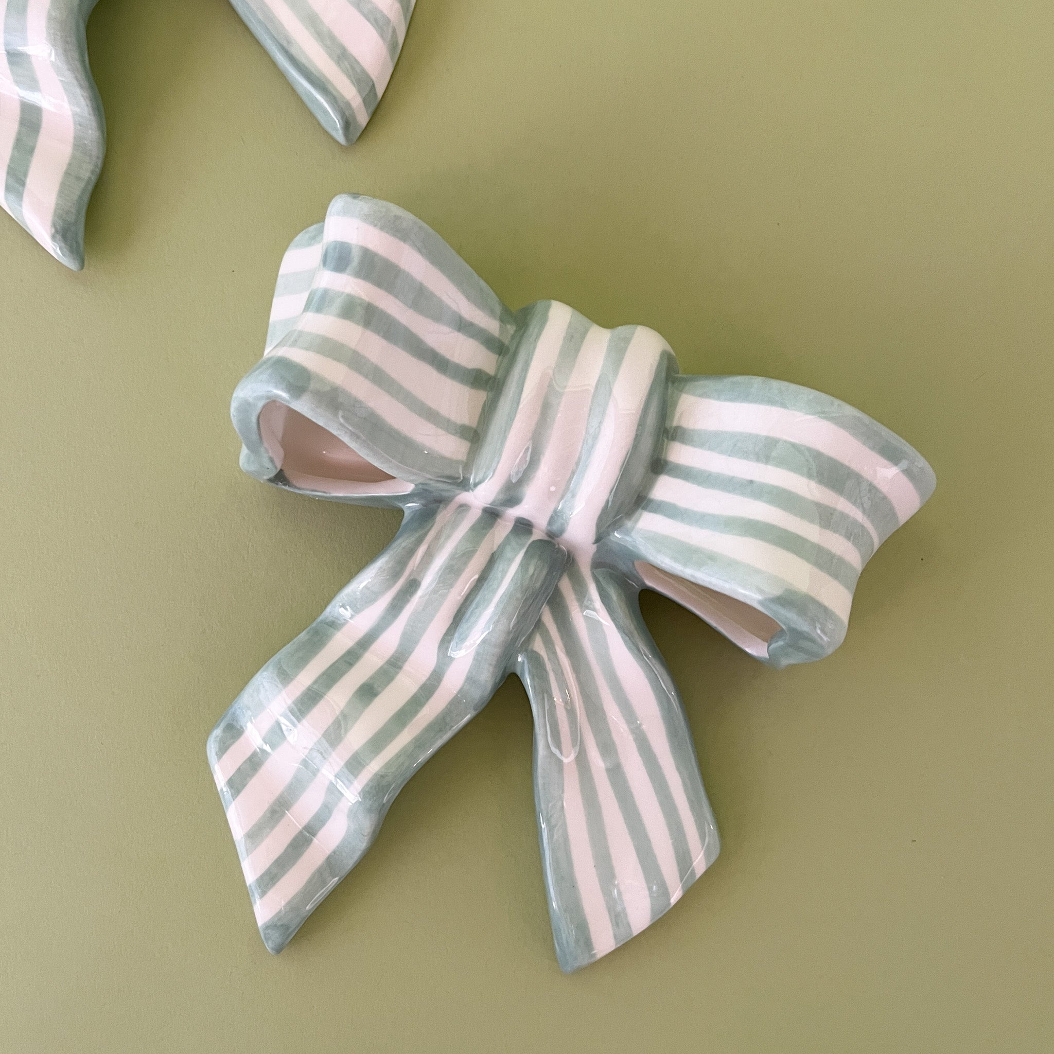 The perfect decorative treatment for a coffee or dining table, these stunning hand-painted ceramic bows can also be hung from the wall above a framed piece of art.