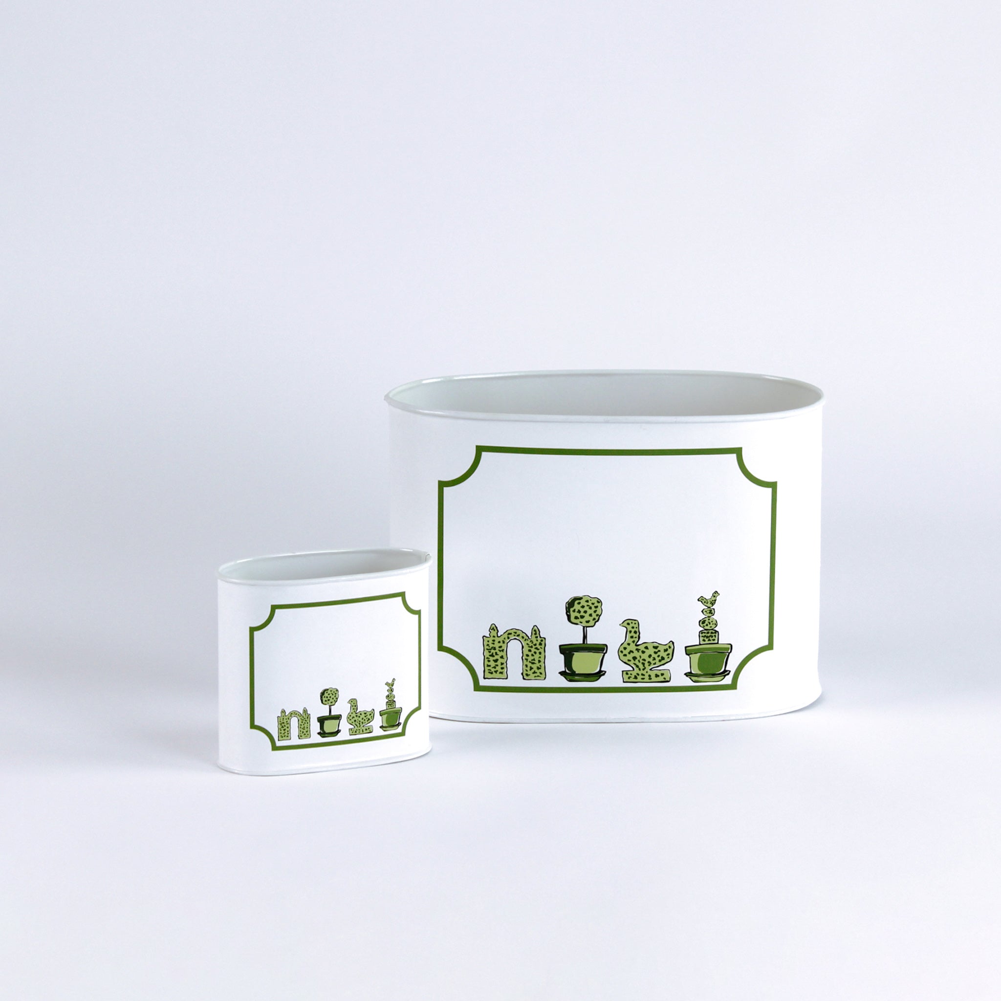 Turn to a marvelous Madcap Cottage decoupage caddy to store your various sundries on your desk, kitchen counter, foyer table and more. Gorgeously embellished with one of Madcaps original patterns, Garden Follies caddy in green and white features fun and classic garden topiaries. The caddies also make for a perfect container for your holiday gifts. A Madcap Cottage exclusive. As this product is made to order, it is not eligible for returns.