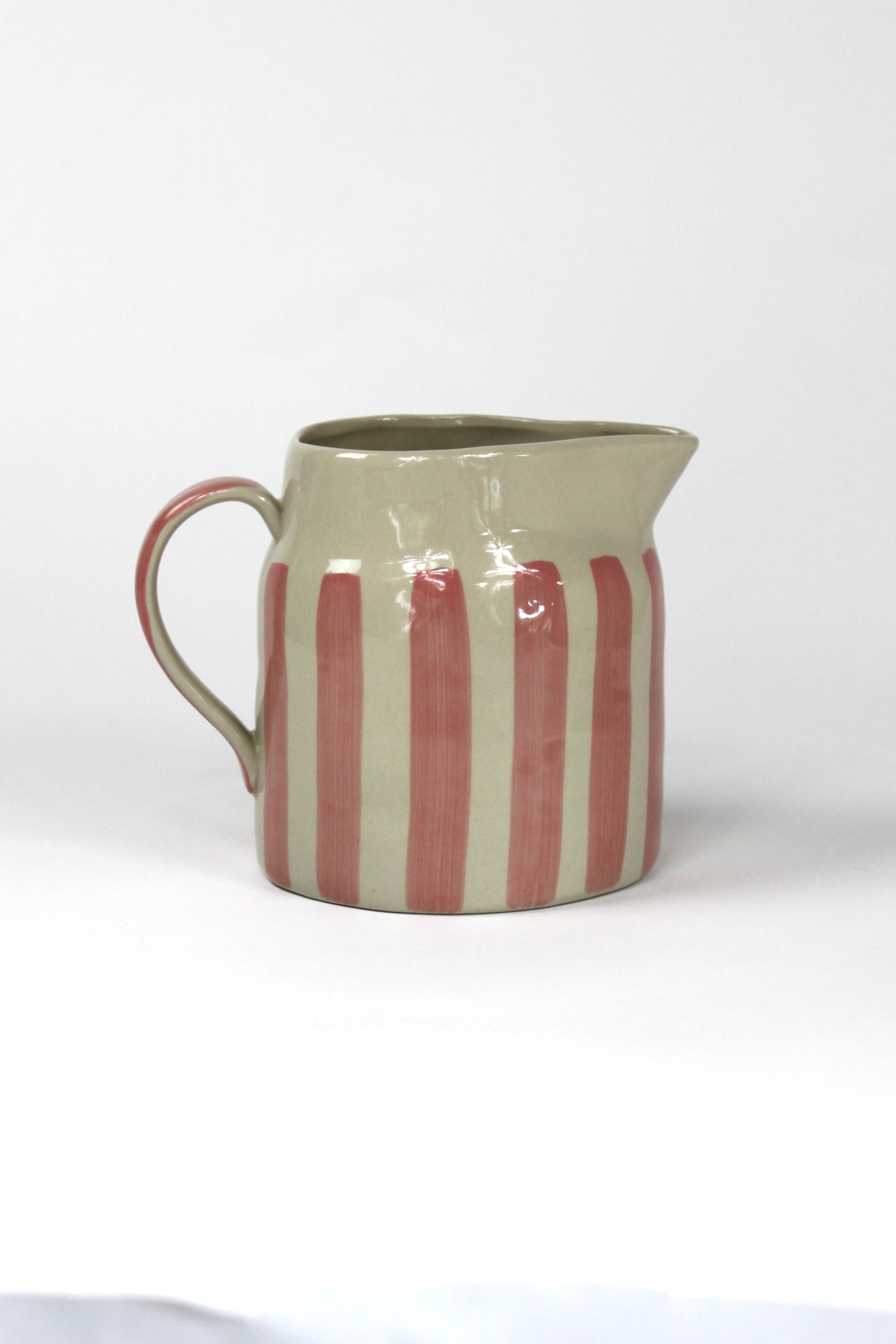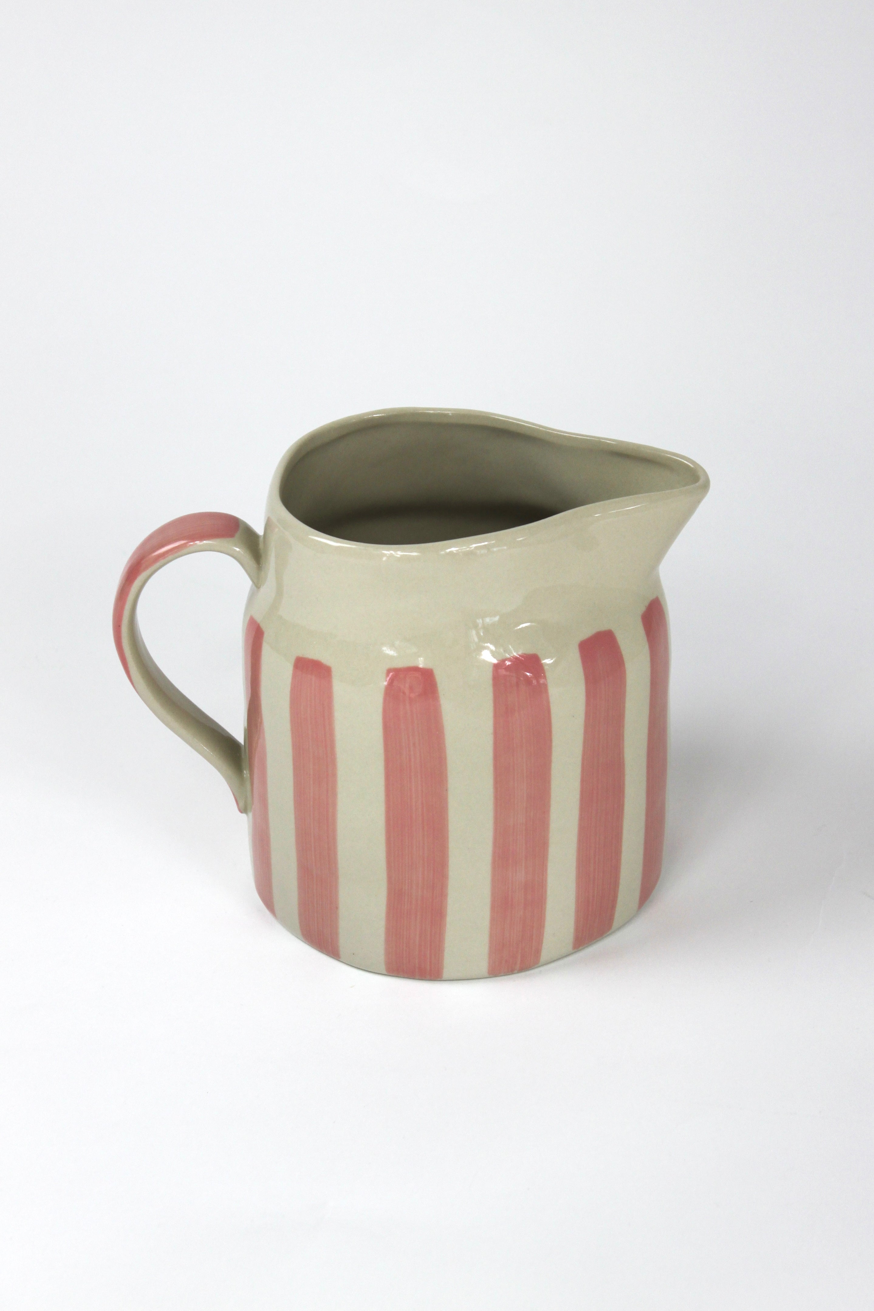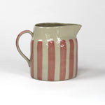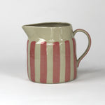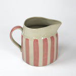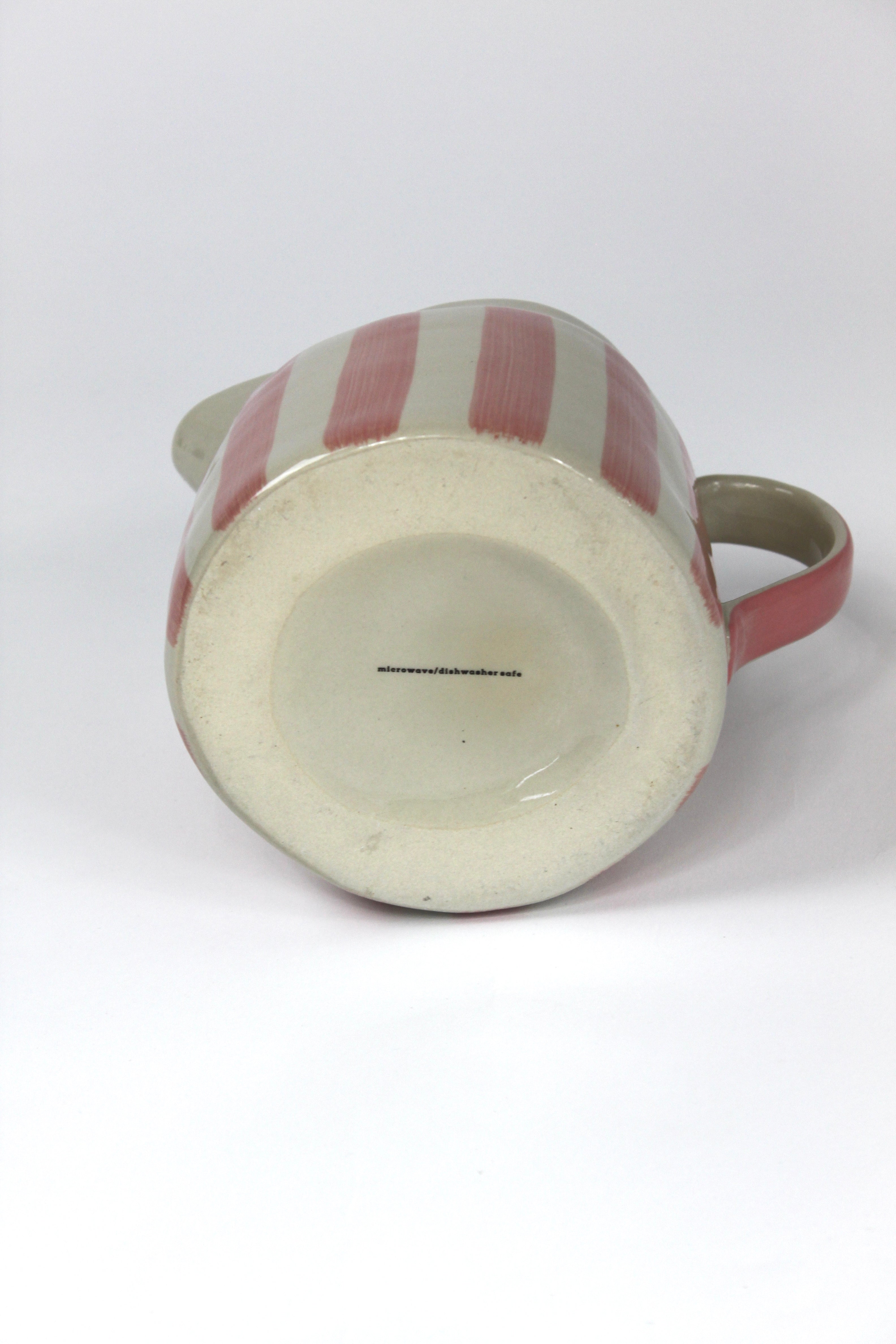 Hand-Painted Pink and White Striped Ceramic Pitcher