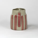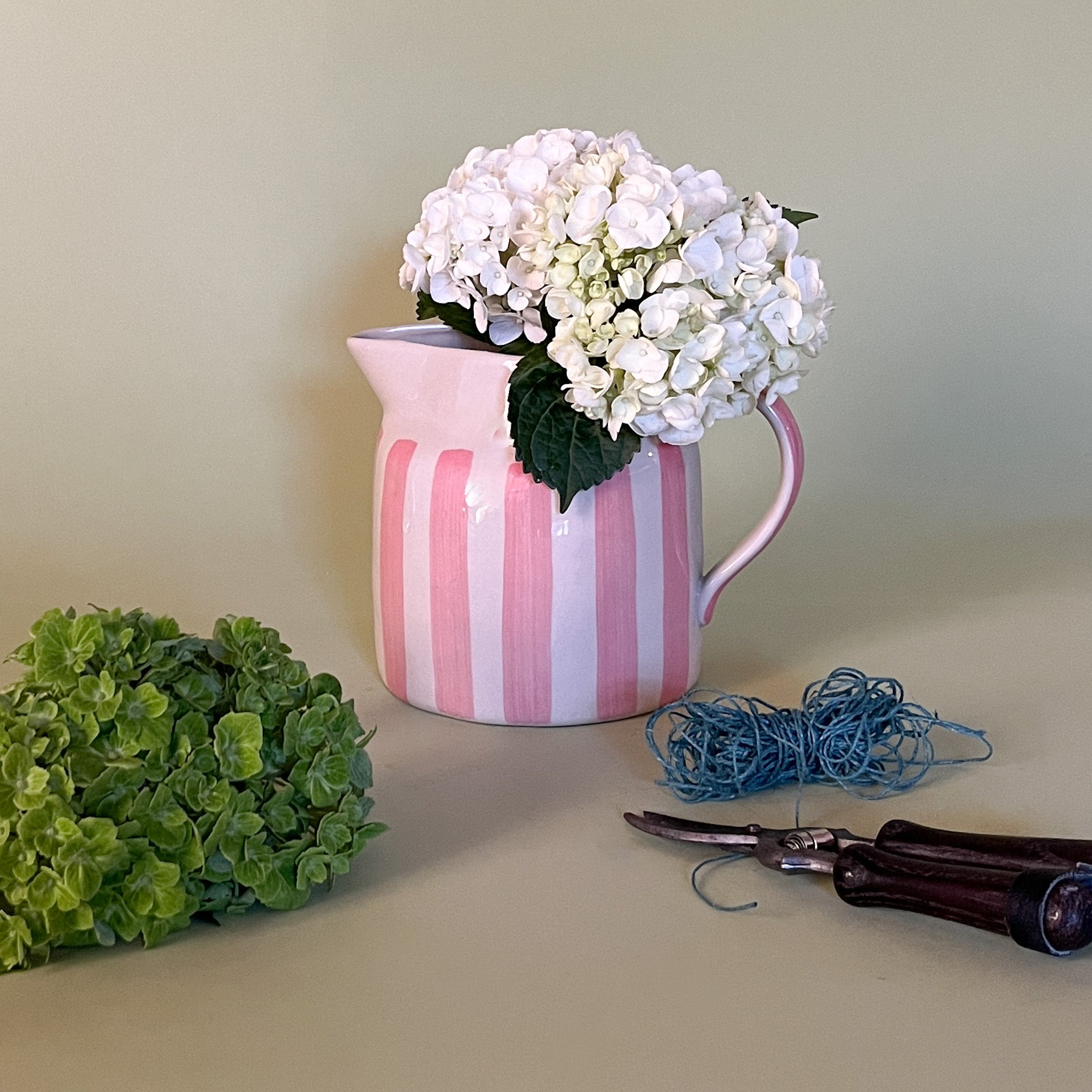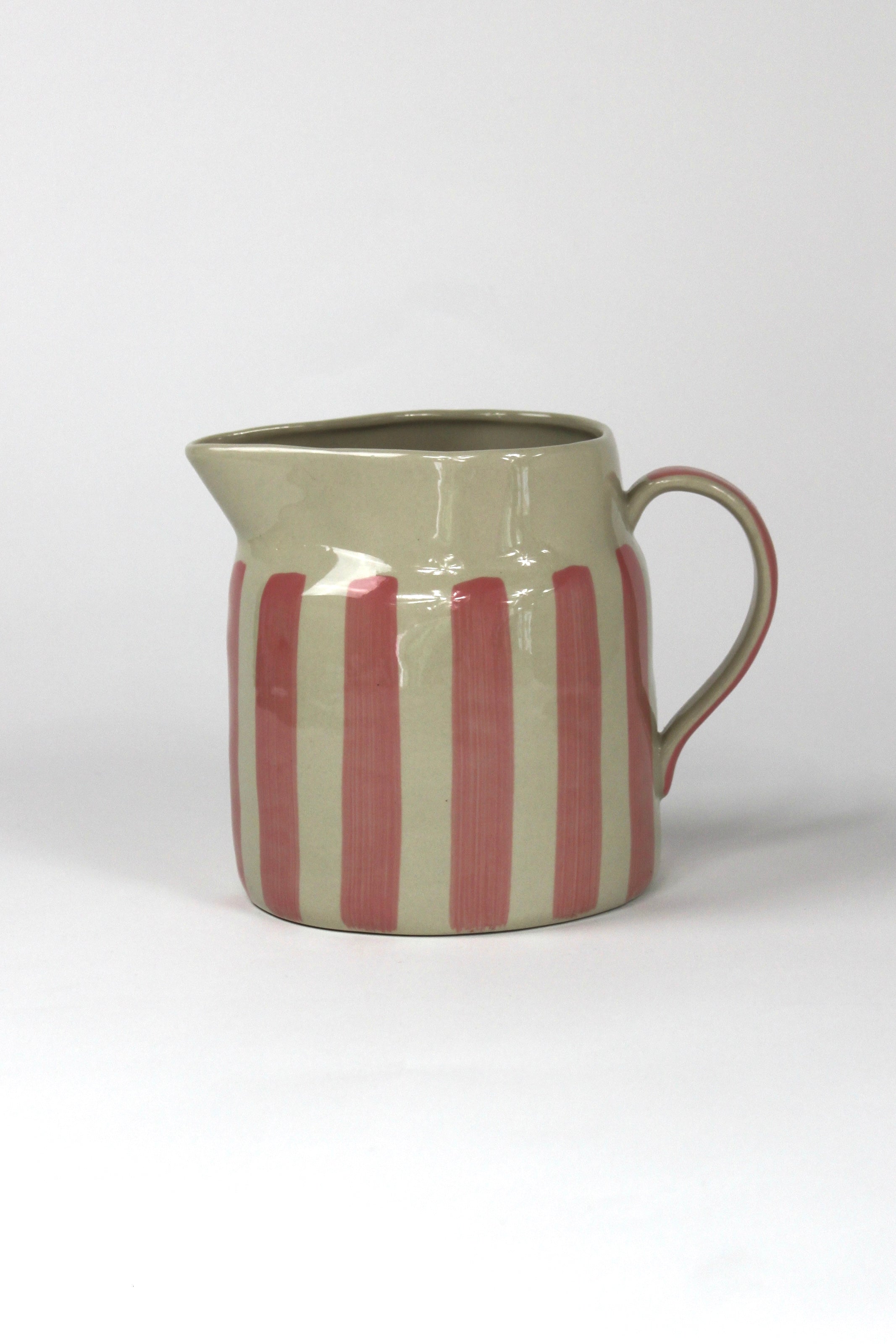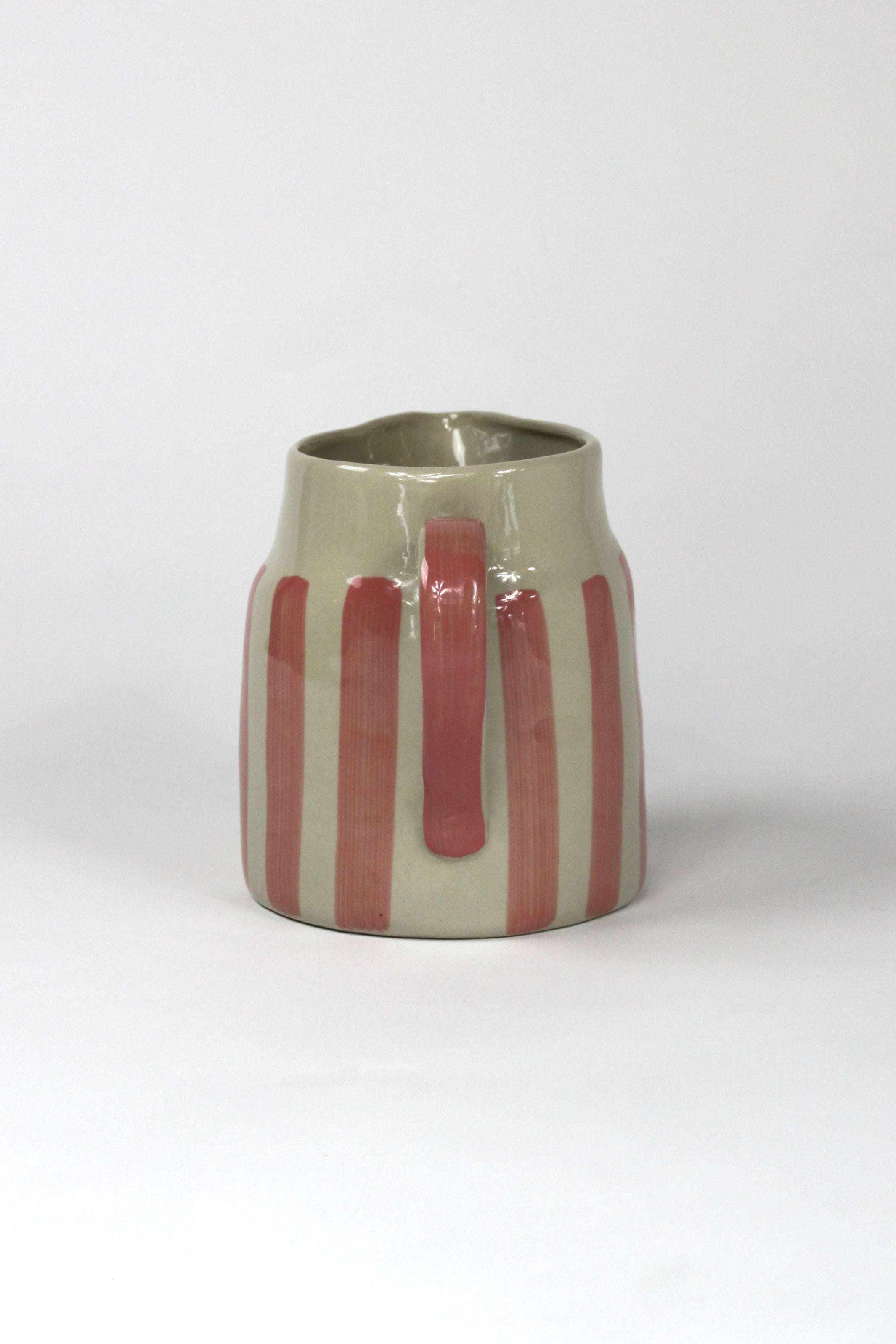 Hand-Painted Pink and White Striped Ceramic Pitcher