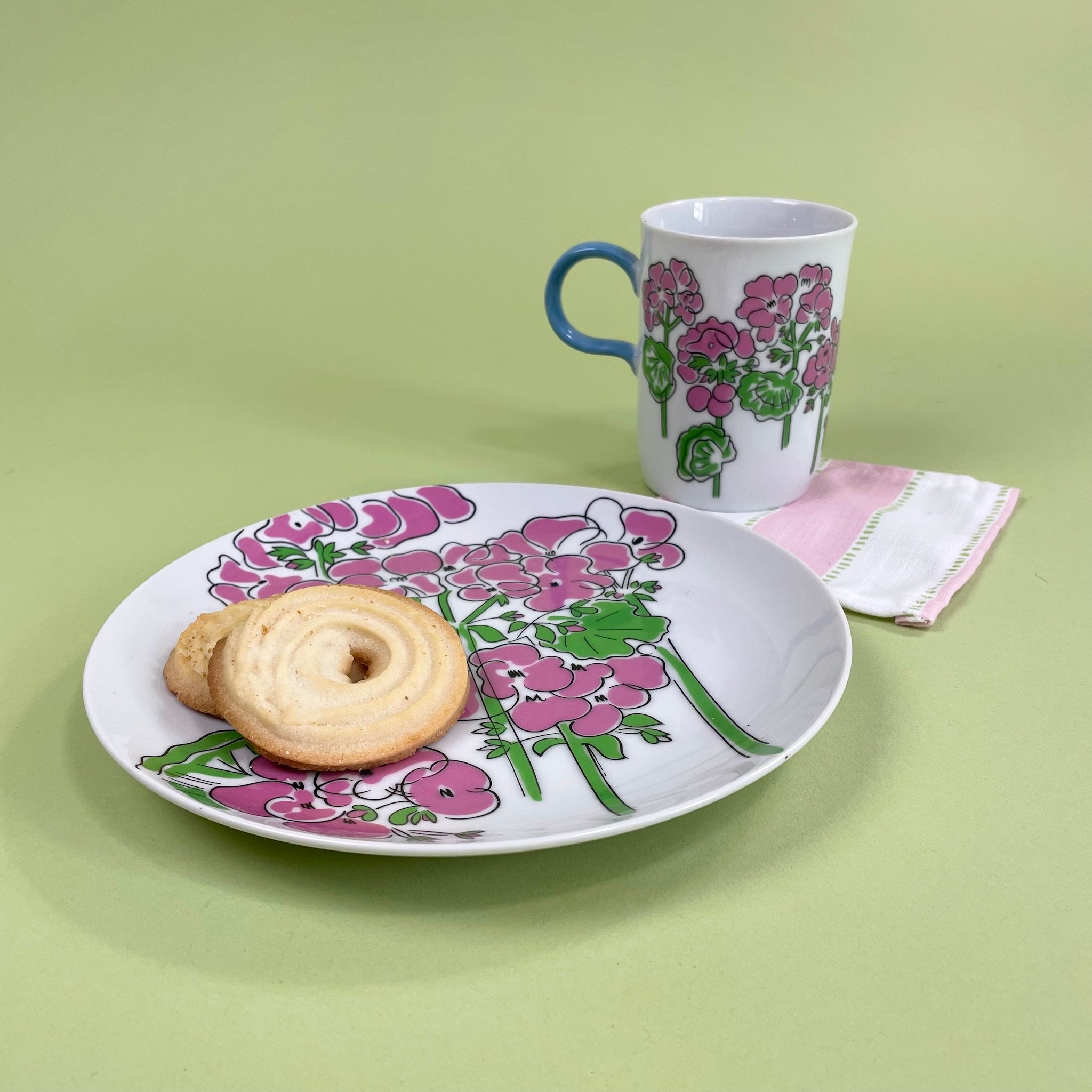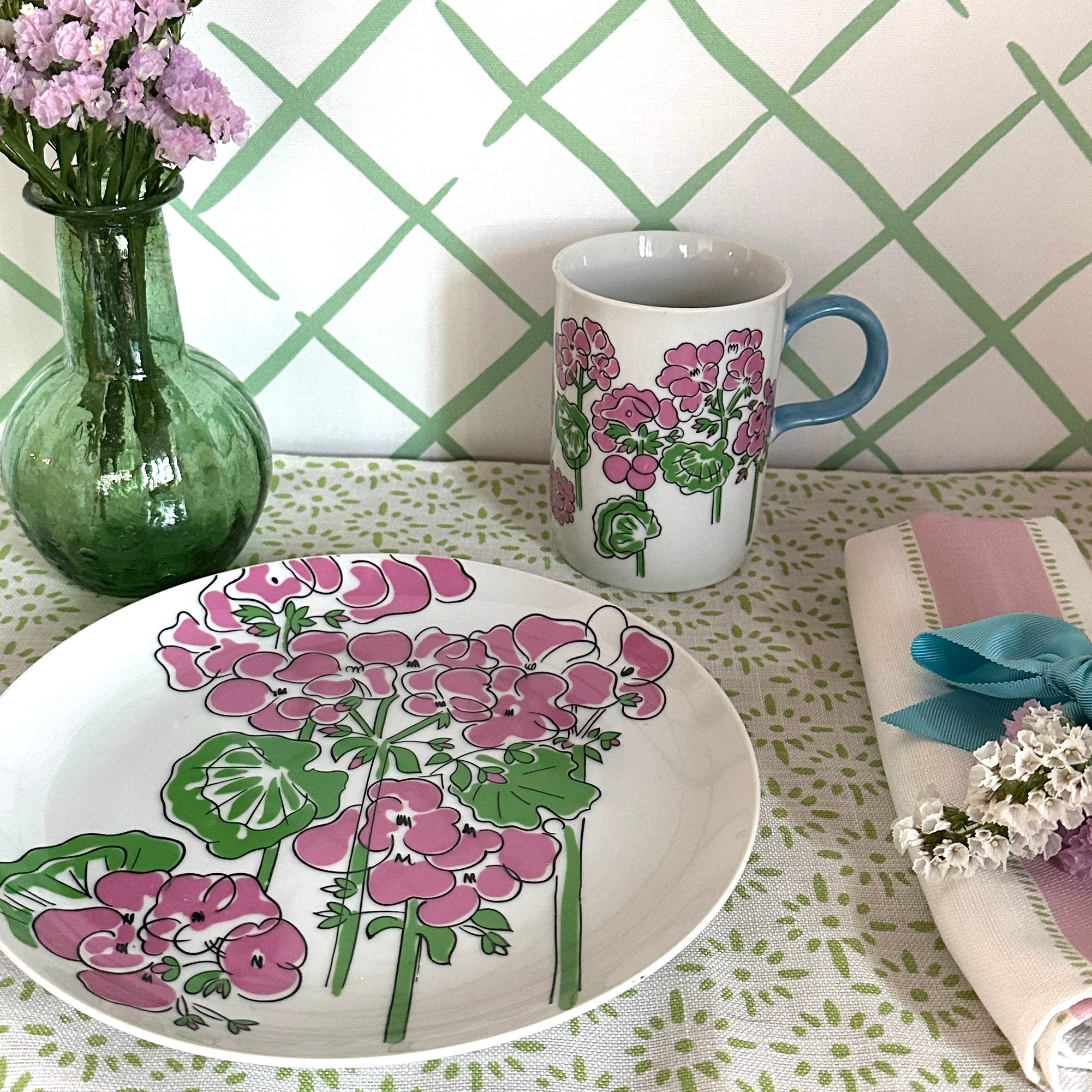 Gloria Vanderbilt didn’t just design painted-on jeans—the American heiress also created stunning, utterly whimsical home products such as these mugs (8 qty.) and dessert plates (8 qty.) embellished with stunning lavender-hued geraniums. Heaven. Made in Japan.
