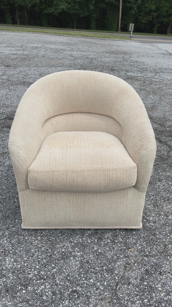 A vintage armchair from the venerable J. Robert Scott showroom is looking to spread her wings and take flight. Super comfortable. Swivel. Perfect for a den or a cozy corner of a living room.