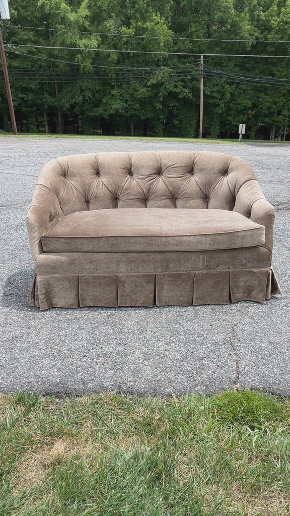 Celebrate the magic of this vintage, button-tufted loveseat that hails from a home on Park Avenue. Super comfortable. Down-wrapped seat cushion. Traditional with a twist. Perfect for setting in and enjoying Derby Day festivities.