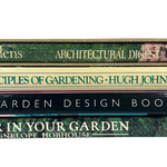 It’s good to be green with a boxed edition of Architectural Digest Gardens from 1983, The Principles of Gardening/A guide to the art, history, science and practice of gardening by Hugh Johnson from 1979, The Garden Design Book from 1997, and Color in Your Garden by Penelope Hobhouse from 1985.