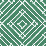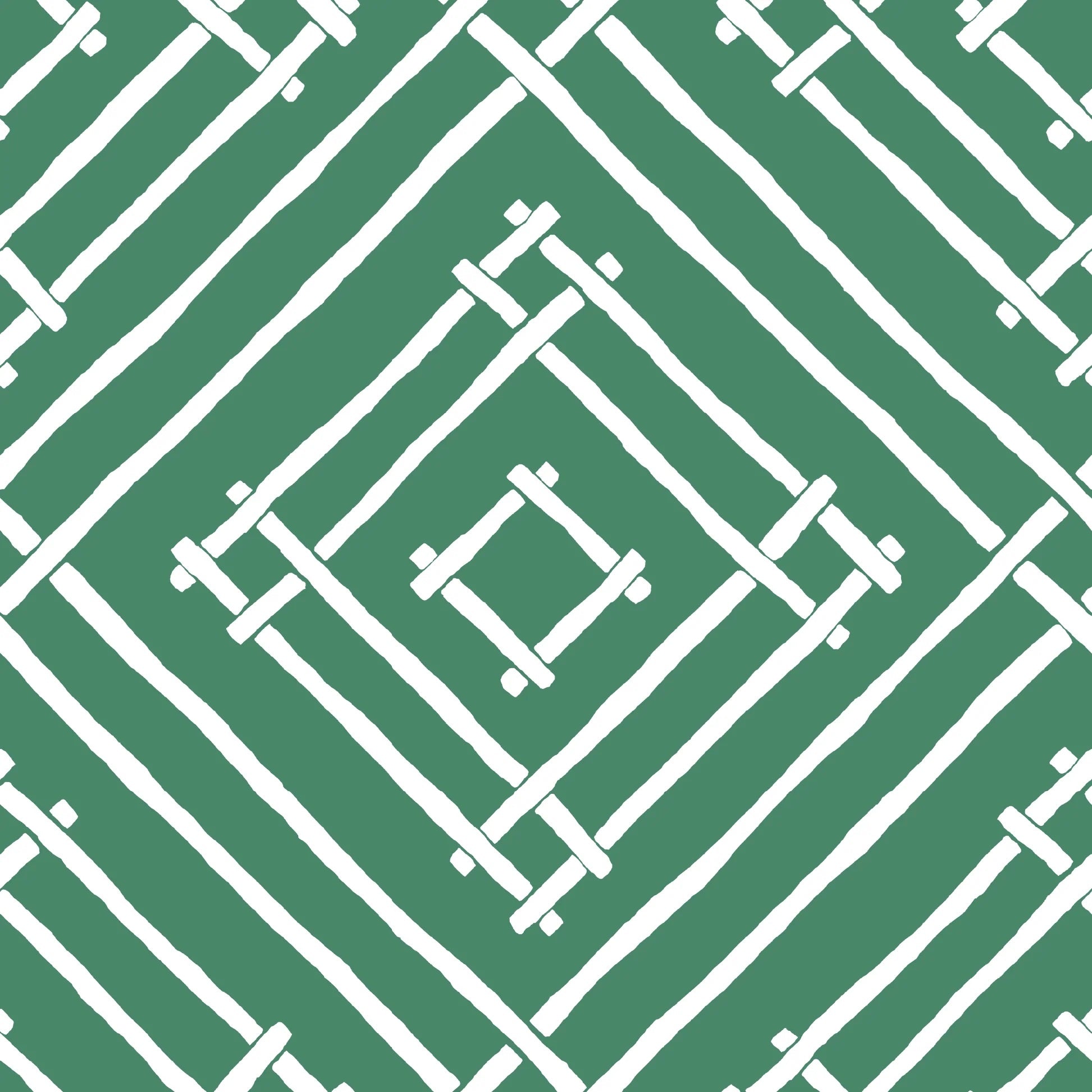Our Island House Forest Green wallpaper pattern is a classic bamboo trellis dressed up with painterly flourishes.