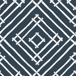 Our Island House Navy Blue wallpaper pattern is a classic bamboo trellis dressed up with painterly flourishes.