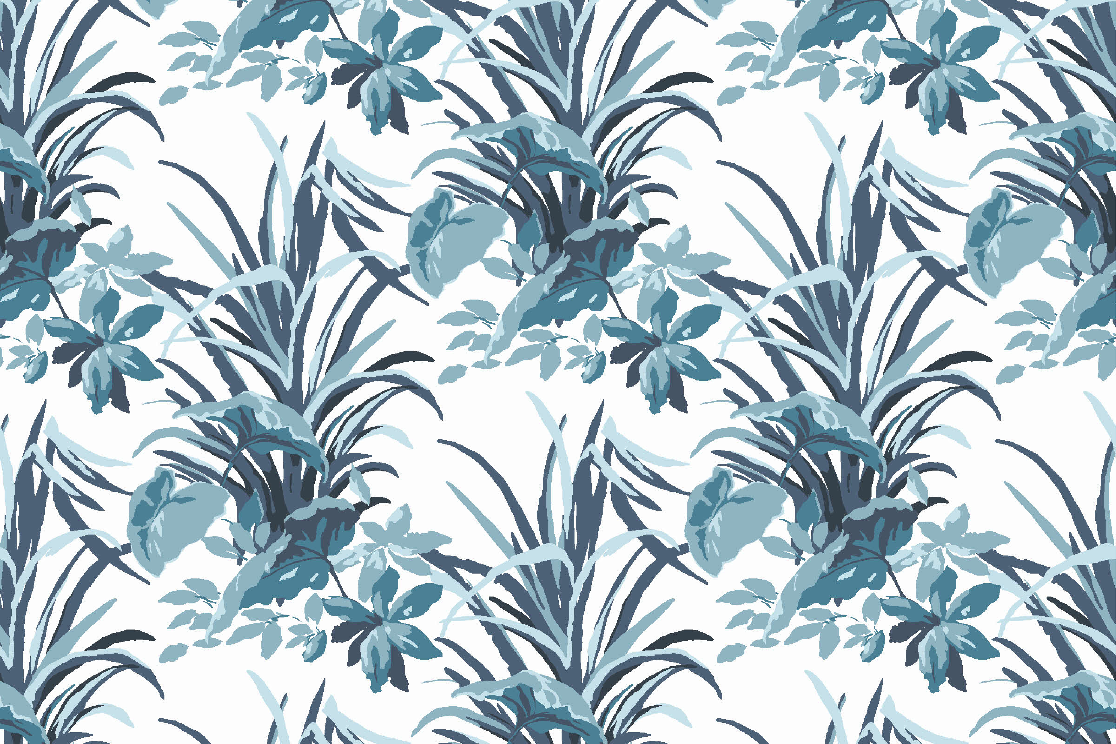 Our Jungle Road palm Indigo Blue wallpaper pattern is a nod to the easy elegance and layered sensibility of a relaxed island escape tucked into a balmy palm grove.