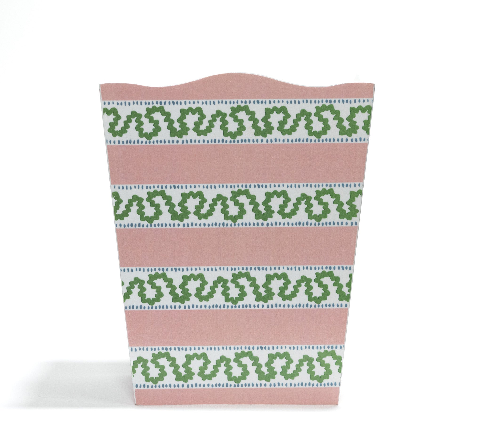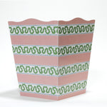 The Madcap Cottage Harbor Trail pattern has become a top seller thanks to its iconic good looks in Palm Beach-plucked pink and green hues. Capture the timeless magic with this hand-decoupaged wood waste paper basket/trash can that delivers both form and function. Pair her with the matching tissue box cover for a perfectly accessorized look.