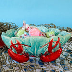 A set of 2, charming footed stoneware lobster bowls perfect for serving that spot-on bisque soup or for piling high with steamed mussels and clams. Set of 2.
