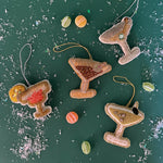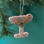 Retro, throwback martini Christmas ornaments loaded with slices of fruit, olives, and other sundries shine and sparkle thanks to gorgeous beadwork. Miniature works of art that will add a far-flung sizzle to your tree.