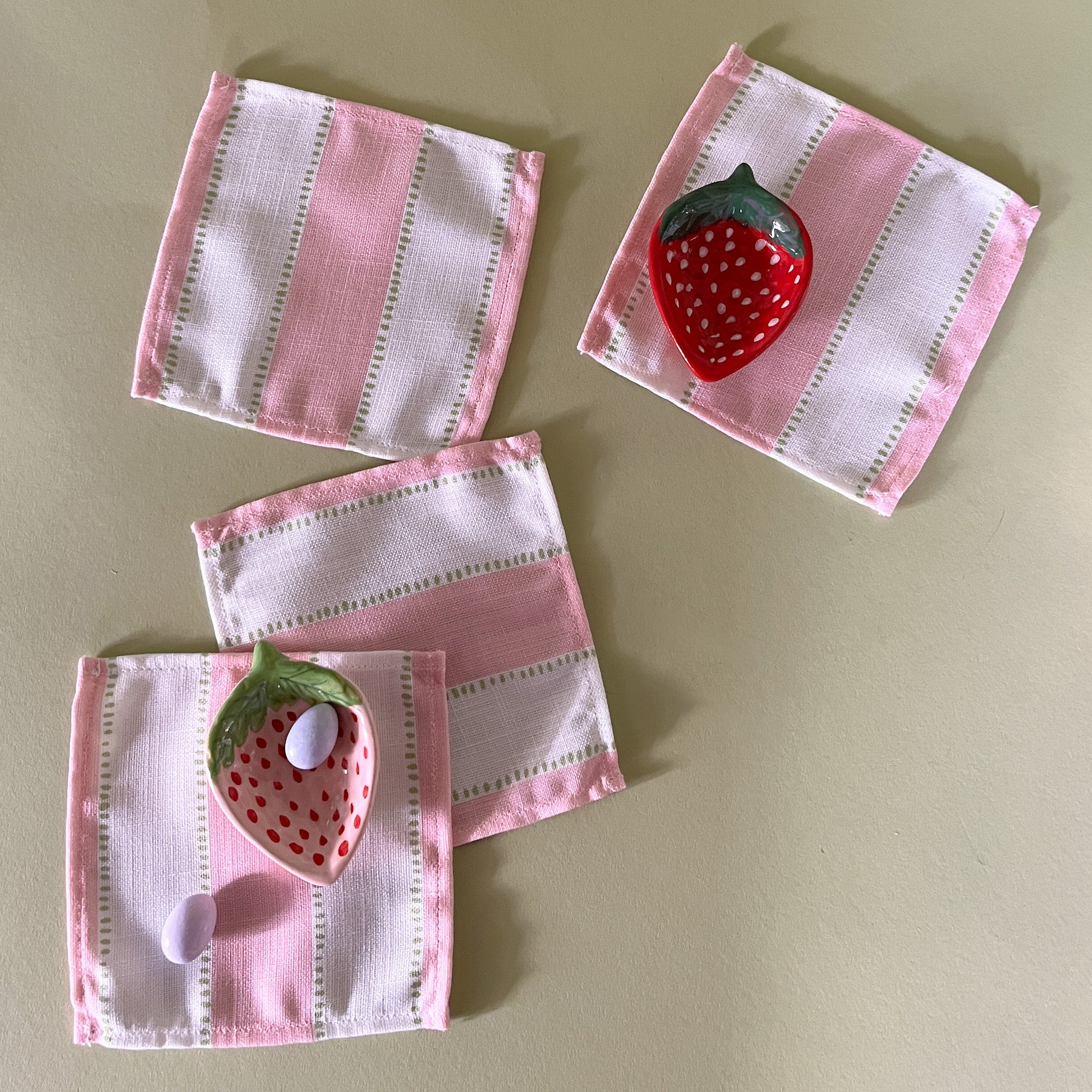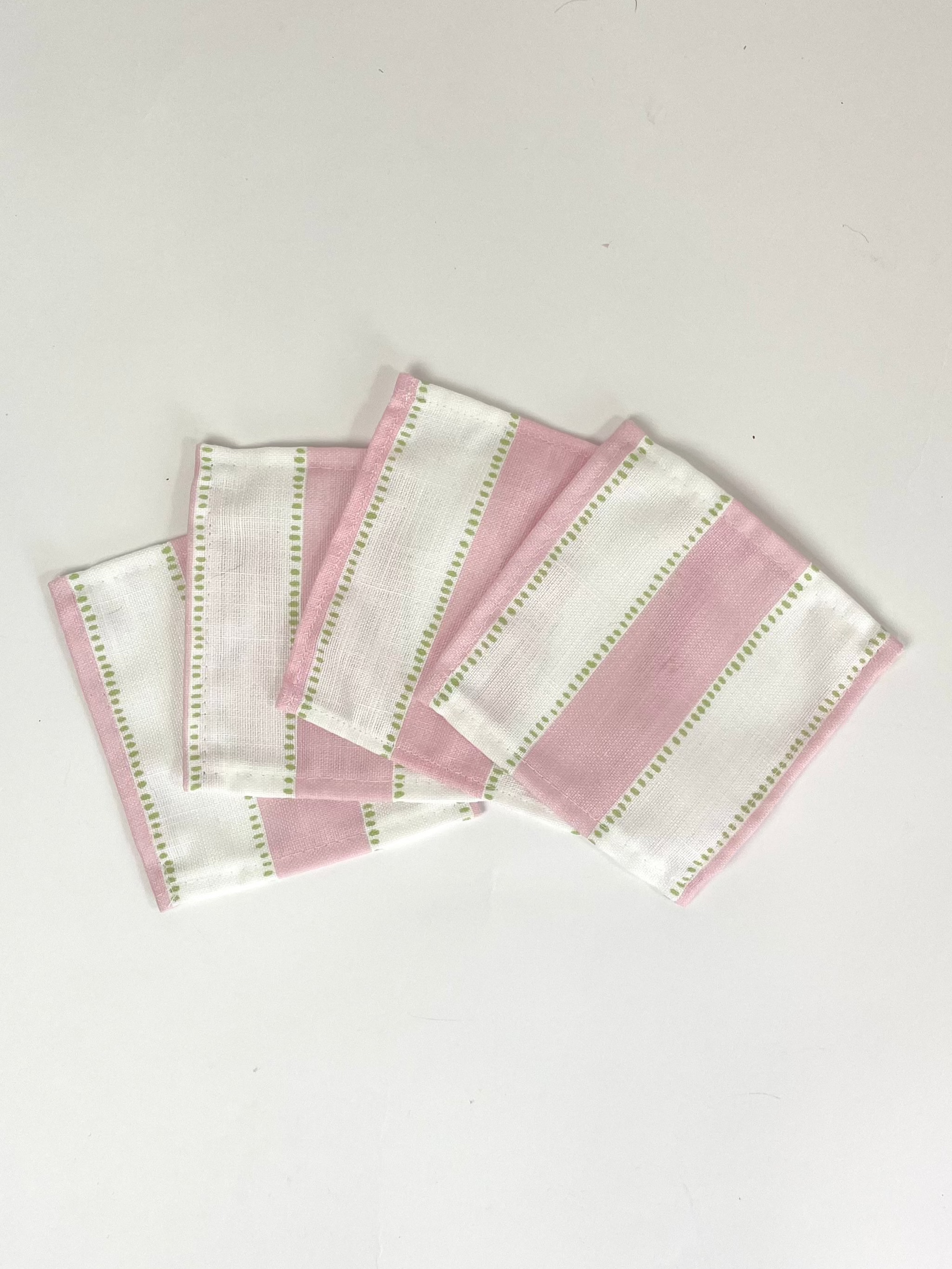 The Madcap gents love to throw a good cocktail party so they have crafted pink stripe cloth cocktail napkins in a linen-like poly to keep the festivities easy and breezy. Who wants to iron all the time, n'est-ce pas?