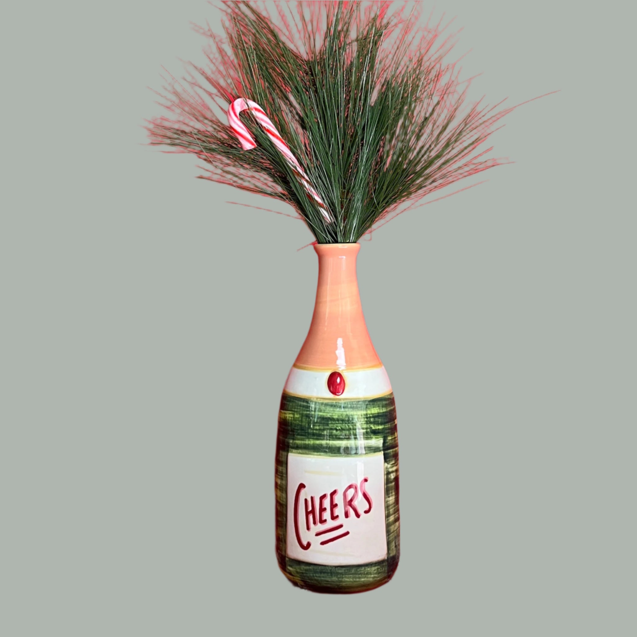 Oversized and packed with whimsy, this ceramic Cheers Champagne vase will be sure to surprise and delight as the perfect gift for your friends who love a little bubbly. Colorful and fun. The perfect centerpiece for your New Year's Eve festivities.