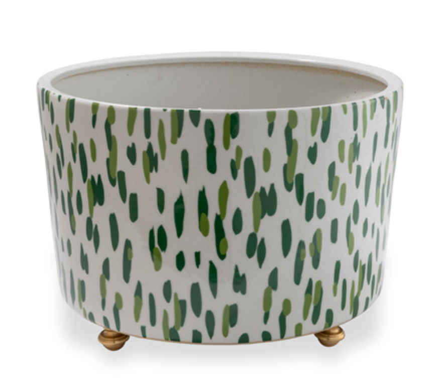Inspired by John's watercolor musings, Club House is a timeless, fresh pattern that works in any environment--from traditional to urban loft. Here, the Club House pattern is lavished upon a stunning porcelain planter. Fill the planter with orchids and decorative moss and you have the perfect centerpiece. The planter has solid brass raised feet for that delicious finishing touch. The Madcaps like using the planter as a wine holder on a sideboard. Add a layer of bubble wrap for protection, then ice—and it’s ready for an evening of spirited entertaining!