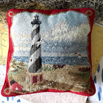Needlepoint Cape Hatteras Lighthouse. Features a hidden zipper.