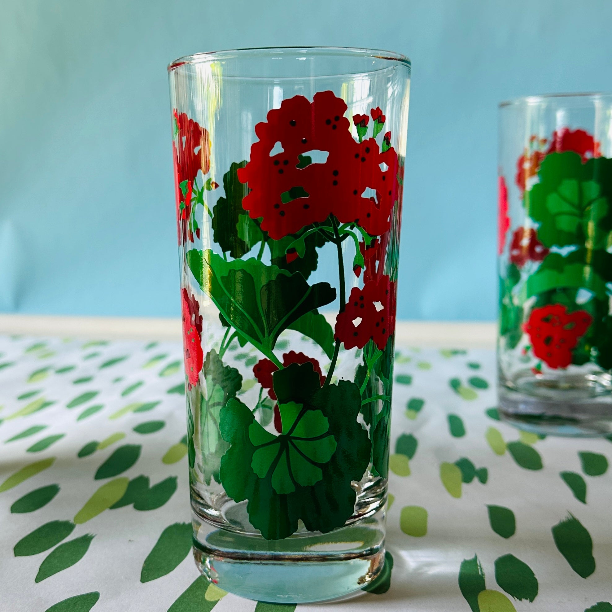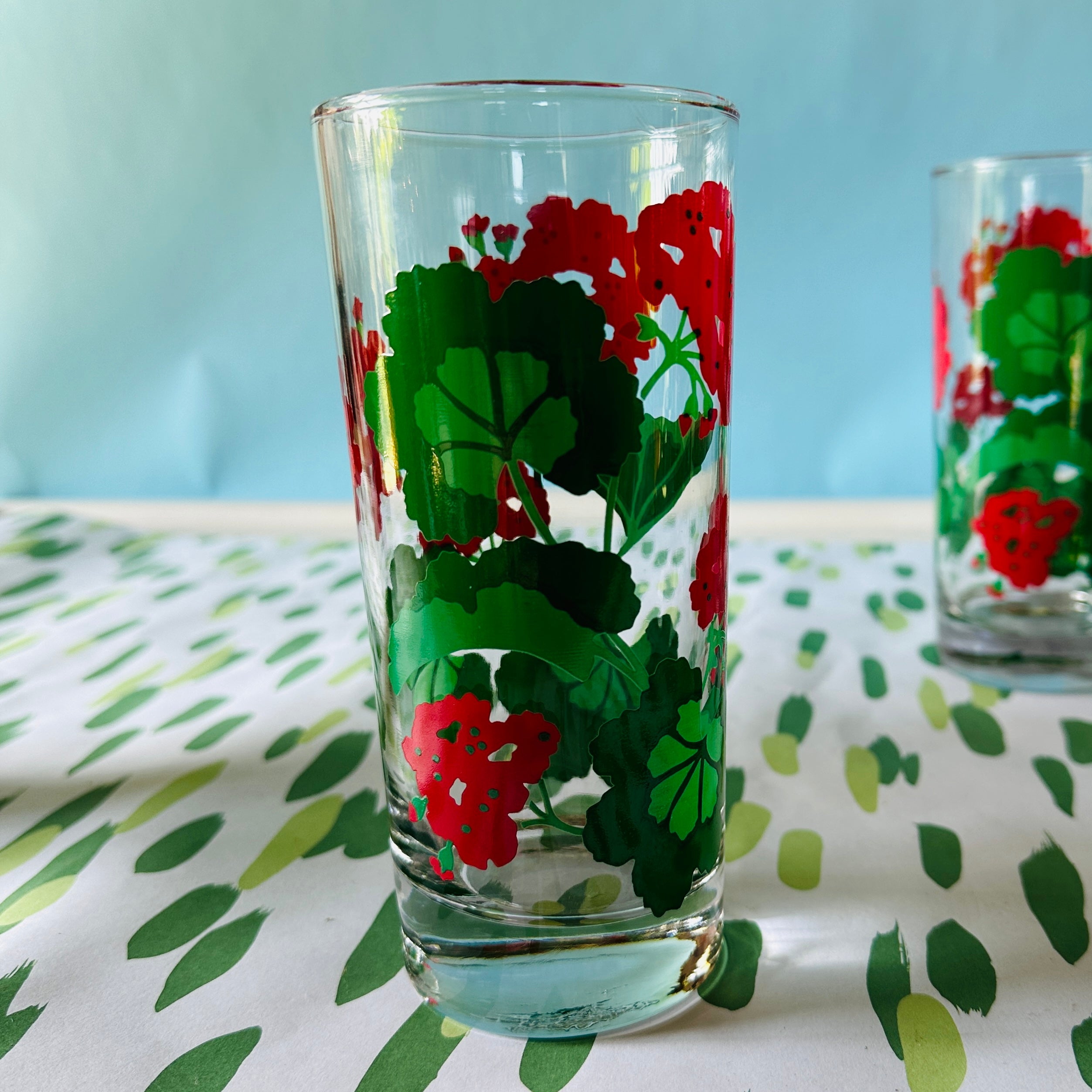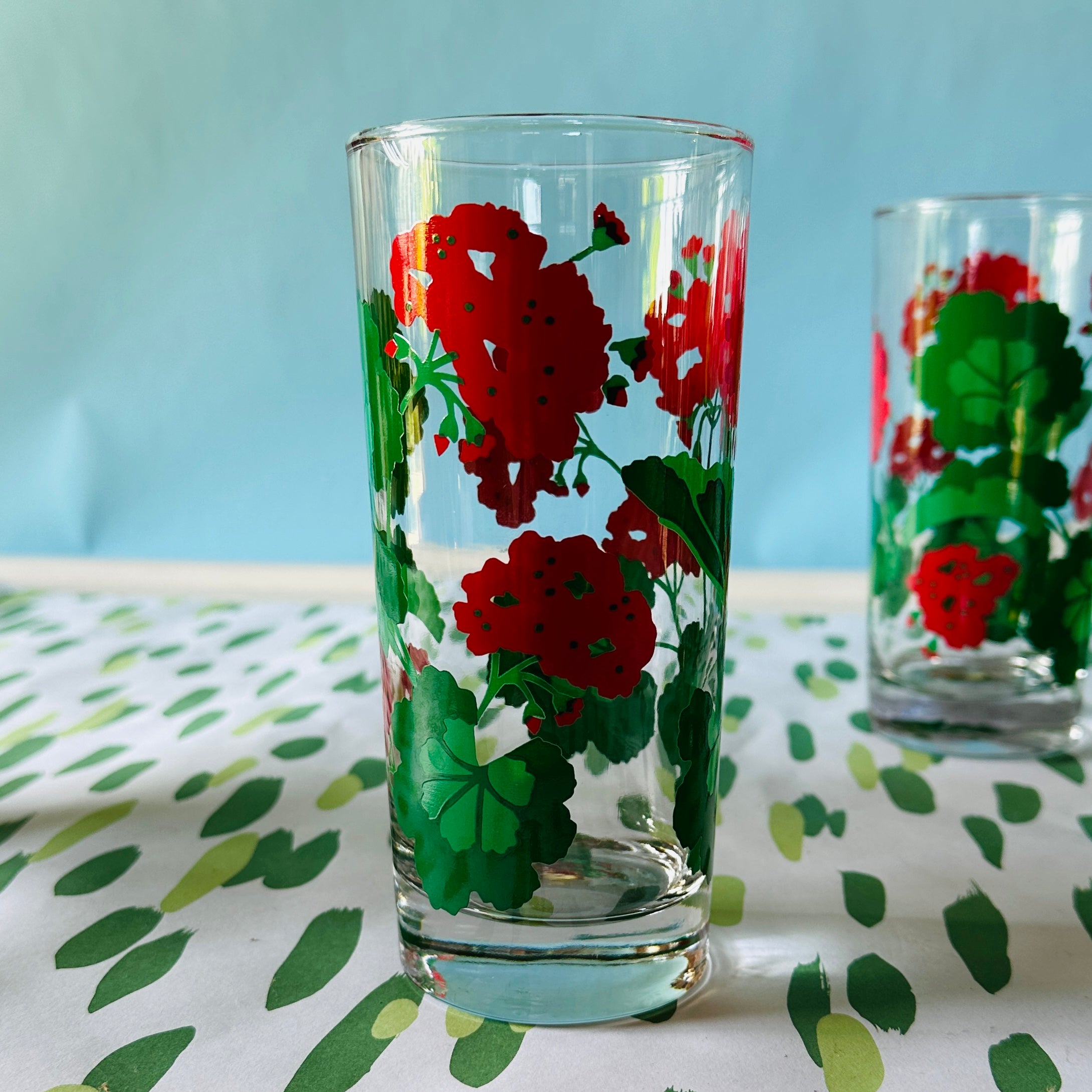 There's nothing quite like red geraniums for putting a smile upon your face, and this floral-bedecked drinks set fits the bill swimmingly. Add a splash of vodka and your smile will be that much bigger. The vintage glasses set is perfect summertime host or hostess gift.