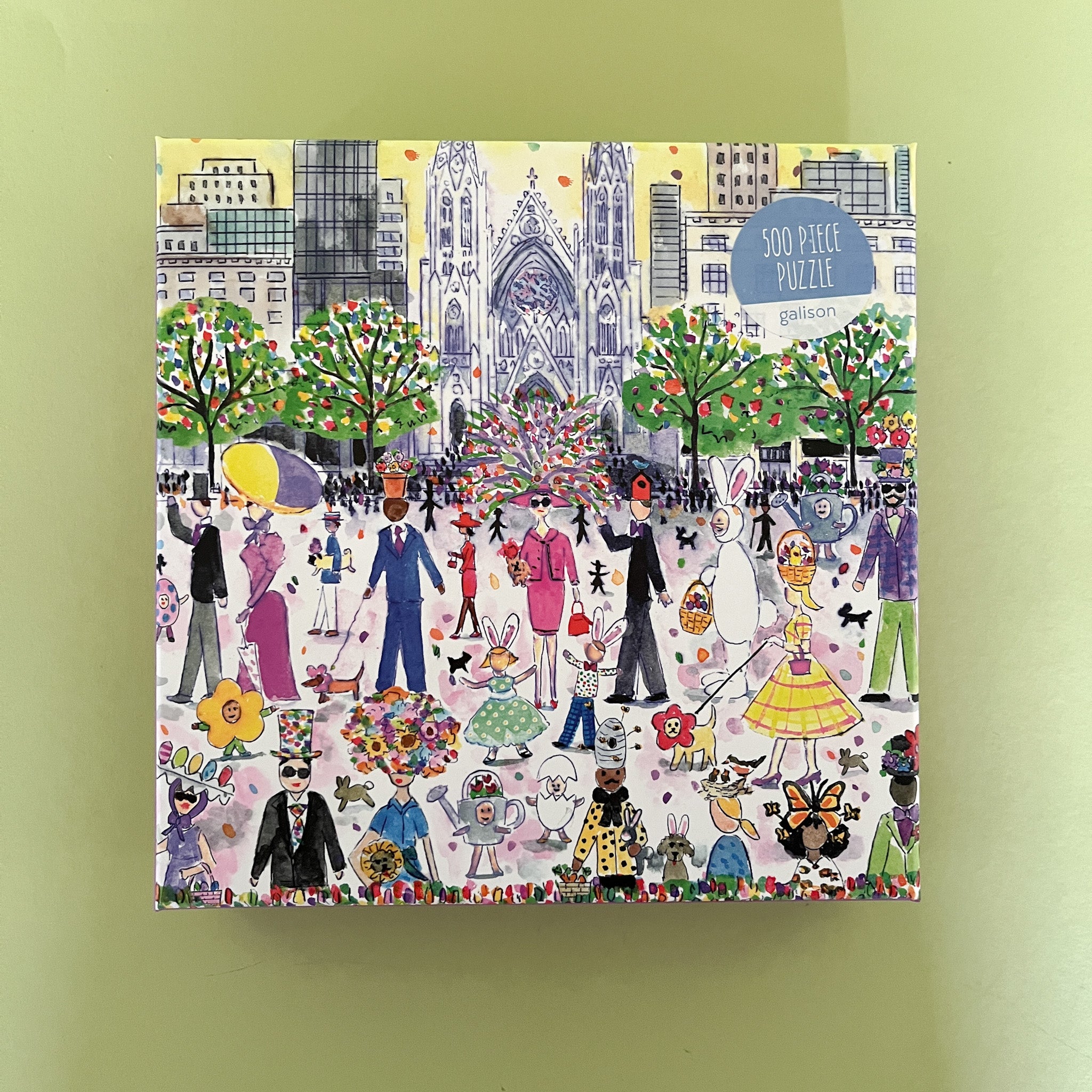 New York City's fabled Fifth Avenue Easter Parade comes to life in this colorfully illustrated 500-piece, 20"L x 20"W Easter jigsaw puzzle. Sadly, the over-the-top chapeau isn't included.