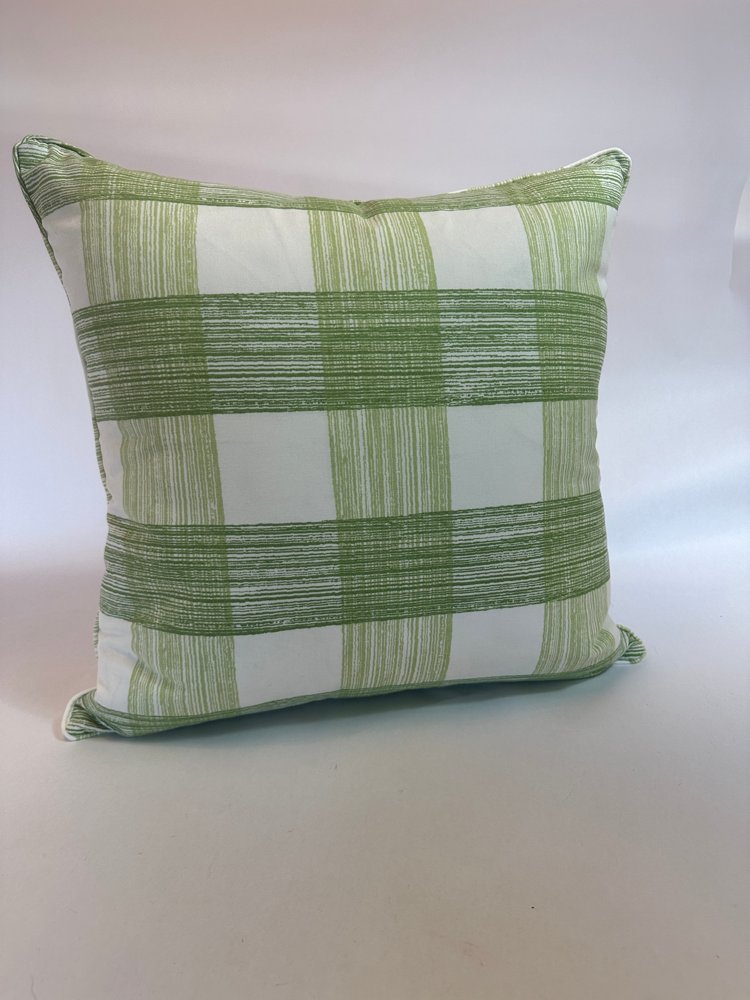 Like a long weekend spent in the Hamptons just after the summer scene has ended, our Swans Island Silhouette pillow in Shell Pink with back made from our Gin Lane in Celery Green check is fresh, invigorating, and always inspired. Equally riveting on the front as she is on the back. Call her Mabel. Hidden zipper. Down and feather insert.