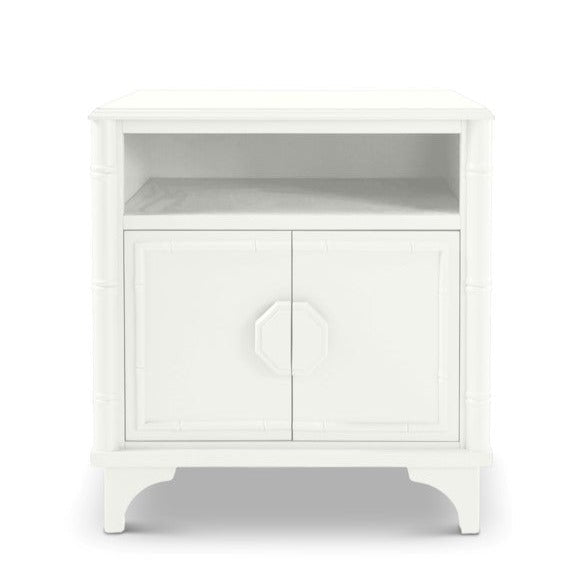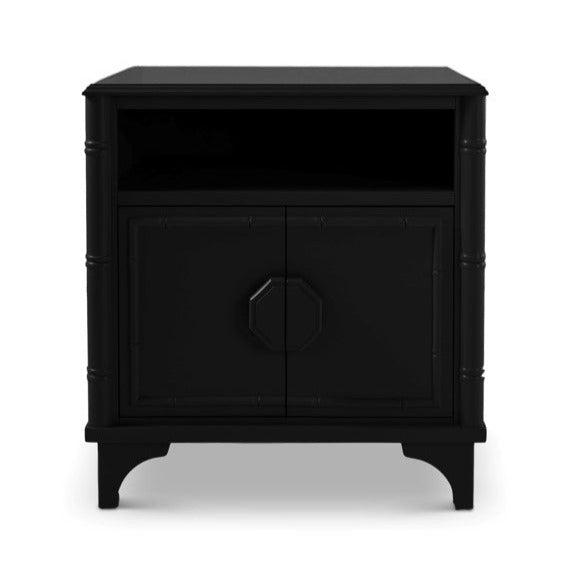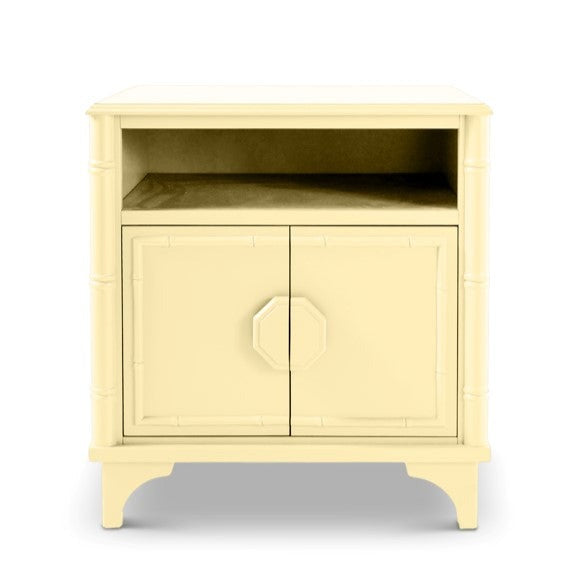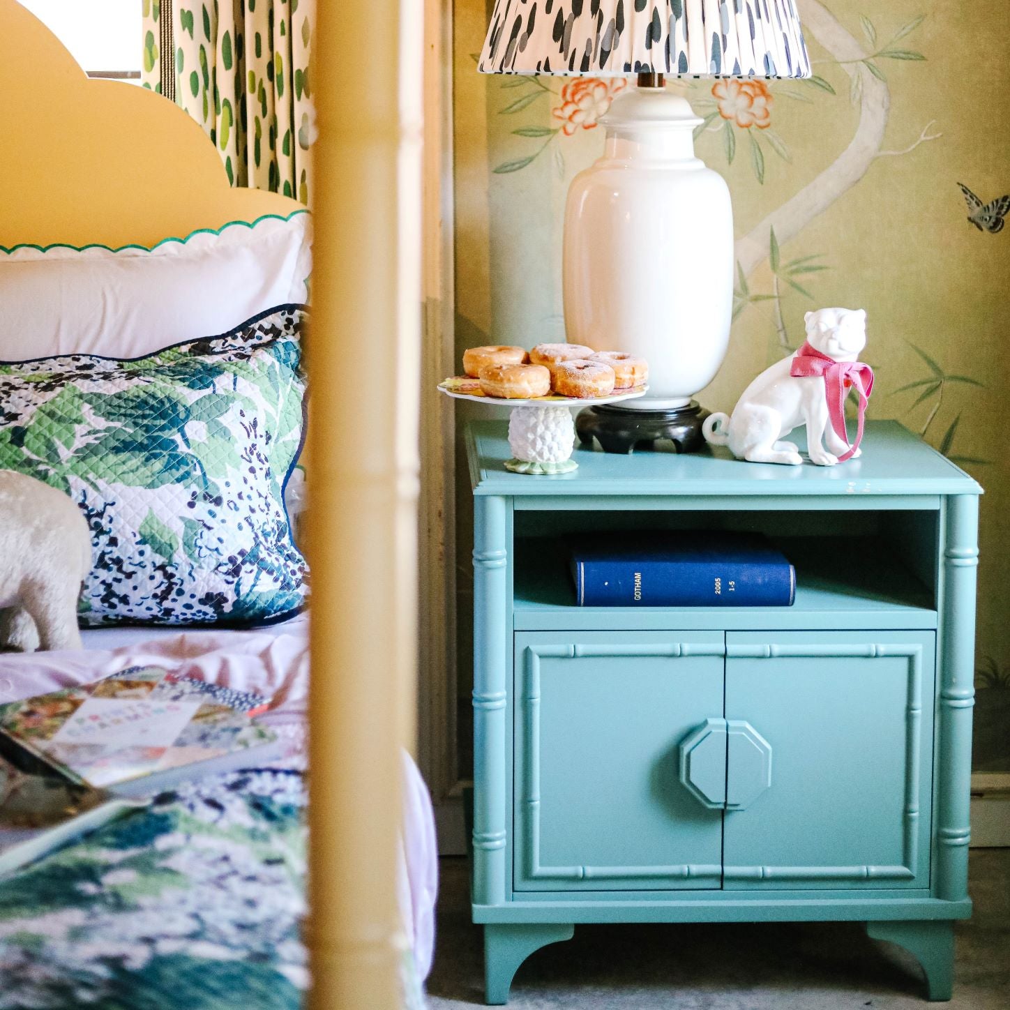 Inspired by the Madcaps’ passion for Palm Beach, Florida, the Lake Trail Side Table boasts faux-bamboo flourishes and a two-door cabinet topped with a petite shelf. Soft-close hinges. Hand-carved wood door pulls. The Lake Trail Night Table can also be used as a convenient side table. Available in Six Standard Finishes or specify any Benjamin Moore, Sherwin-Williams, or Farrow & Ball paint color for your own unique finish. To order this piece in a custom color, Click Here.