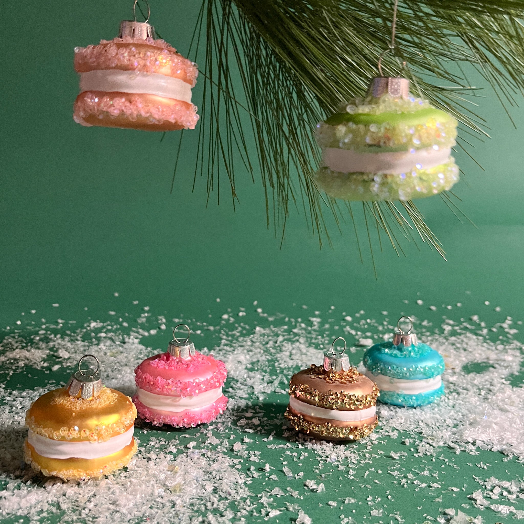 While you might not be able to make it to fabled macaron maker Ladurée this season, bring a taste of that timeless Parisian chic home. This whimsical set of six multicolored glass macaron ornaments, are sugar-coated in delectable candy-hued colors.