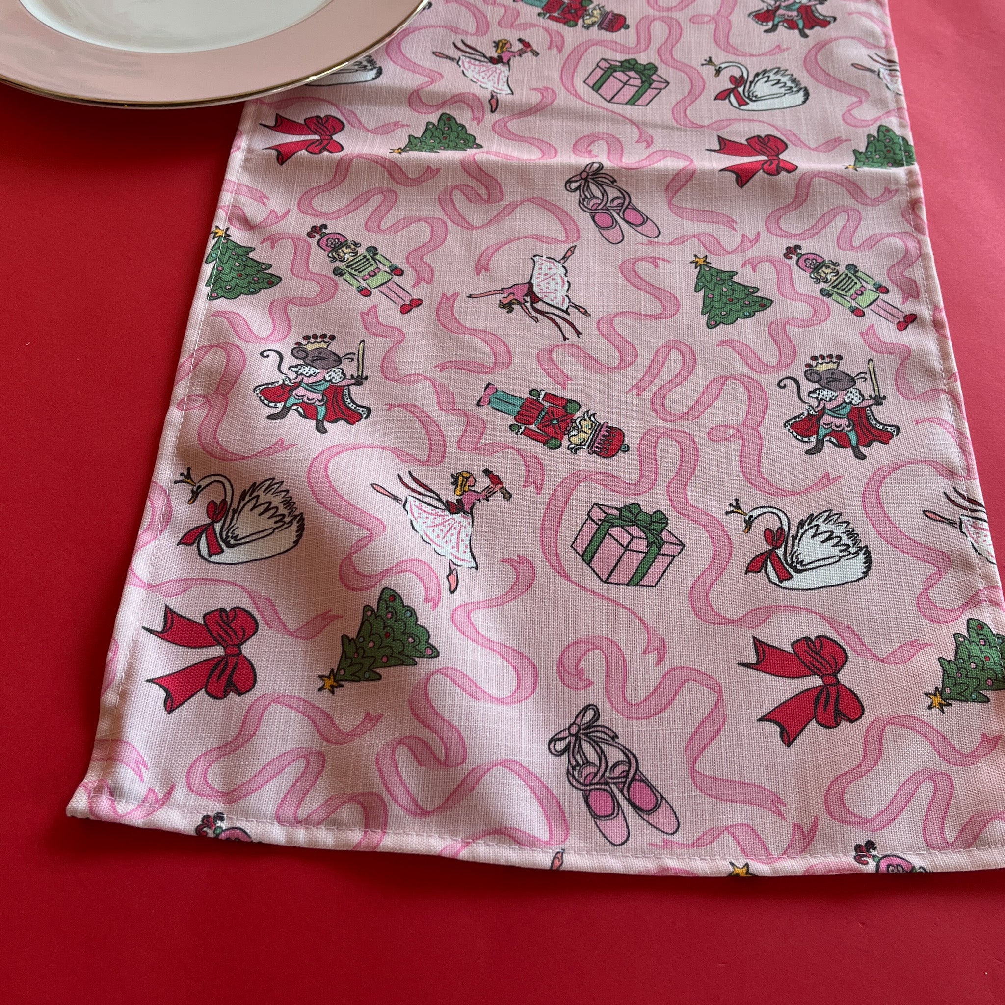 The Madcap gents have crafted a range of no-iron table runners--all based upon their original watercolor paintings and sketches--to add a whimsical focal point to your holiday dining table. Here, Nutcracker Ribbons Christmas cloth table runners, printed on a linen-like fabric.