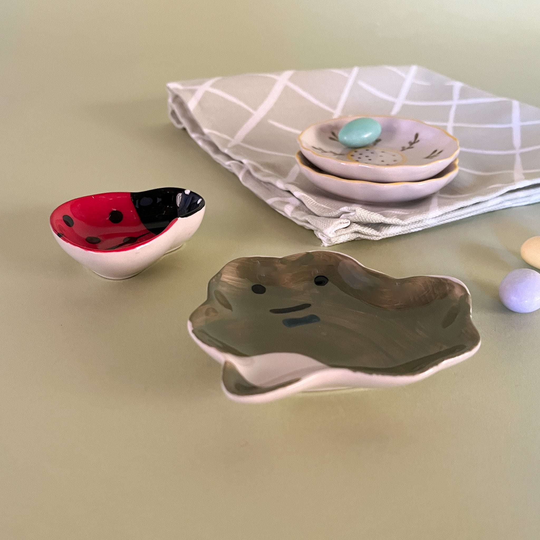The Madcap gents can't get enough of these miniature garden-themed accent bowls, perfect for holding butter pats or small treasures. Whimsical. Wonderful. Essential. Choose from a ladybug, frog or pretty flower or better still, buy all three!