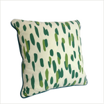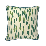 Our Club House Palm pillow is a cool new classic, a timeless essential. We love the soothing, painterly quality of this print paired with a solid green welt to craft the pillow of your dreams. And you can’t go wrong with a gorgeous green hue in your home! Hidden zipper. Down and feather insert.