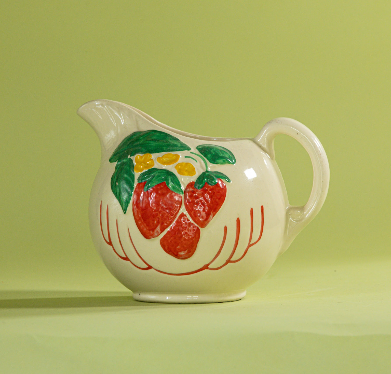Vintage Red/Green/Yellow Ceramic Strawberry Pitcher
