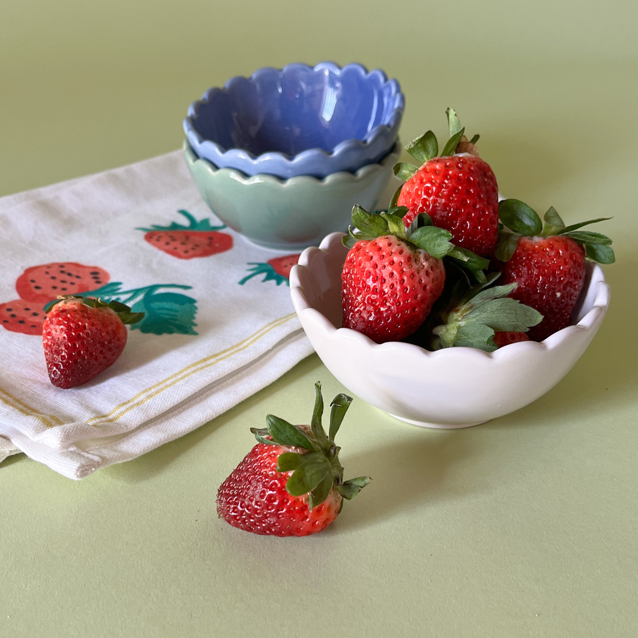 Pastel perfection, these spring-plucked, delightfully white scalloped bowls are perfect for serving Easter candies and other seasonal delights.