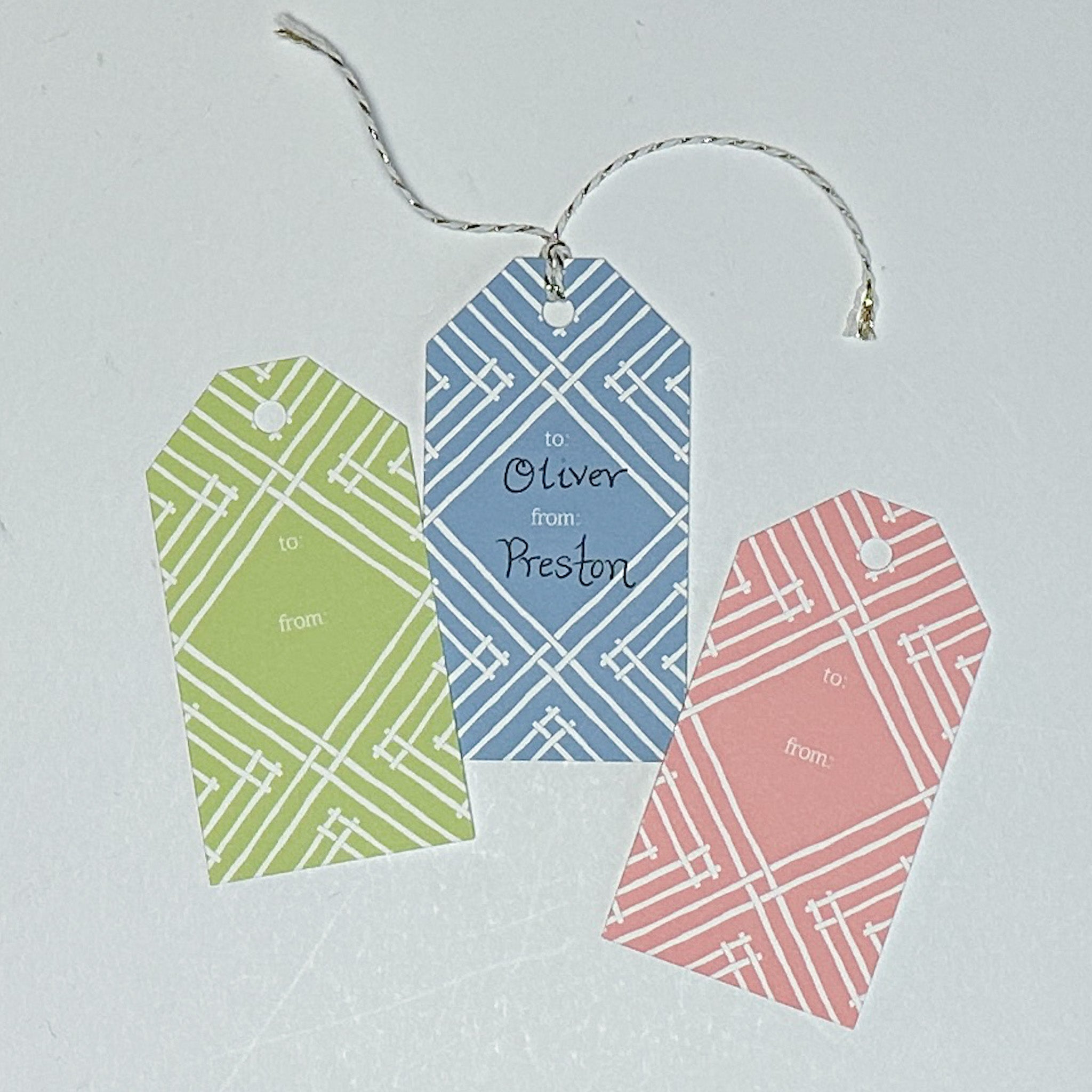 You can't go wrong with a southampton pink lattice pattern that channels the eternal glamour of Chinoiserie chic. Here, Island House delivers a splash of that far-flung glamour upon wonderful, made-in-America gift tags.