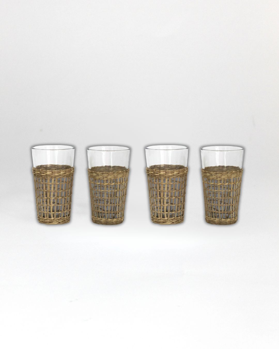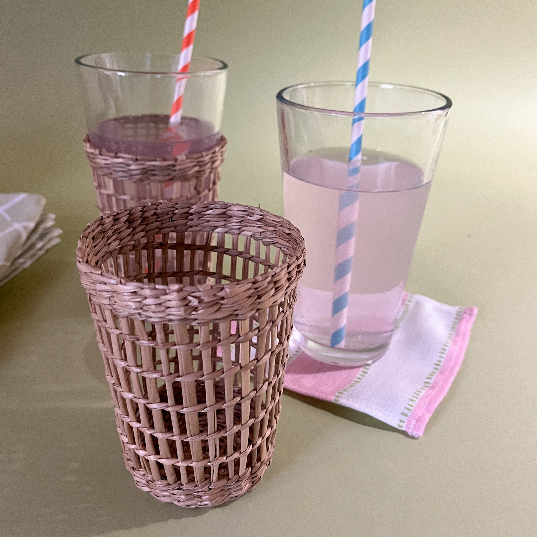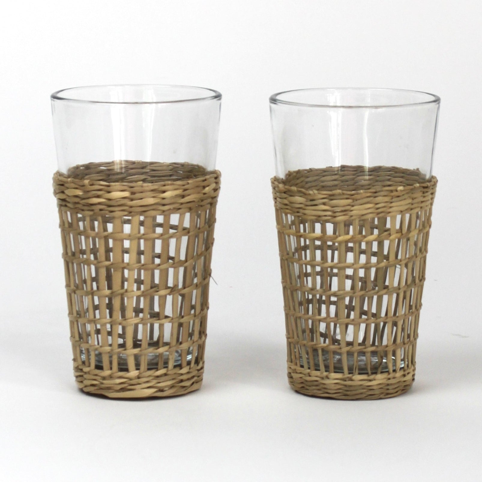Sip that delightful bourbon-laden cocktail in these wonderful seagrass wrapped glasses. Bottoms up, buttercup! The sleeve slips off for easy cleaning, and the glasses can go right into the dishwasher. We just love easy-breezy chic.