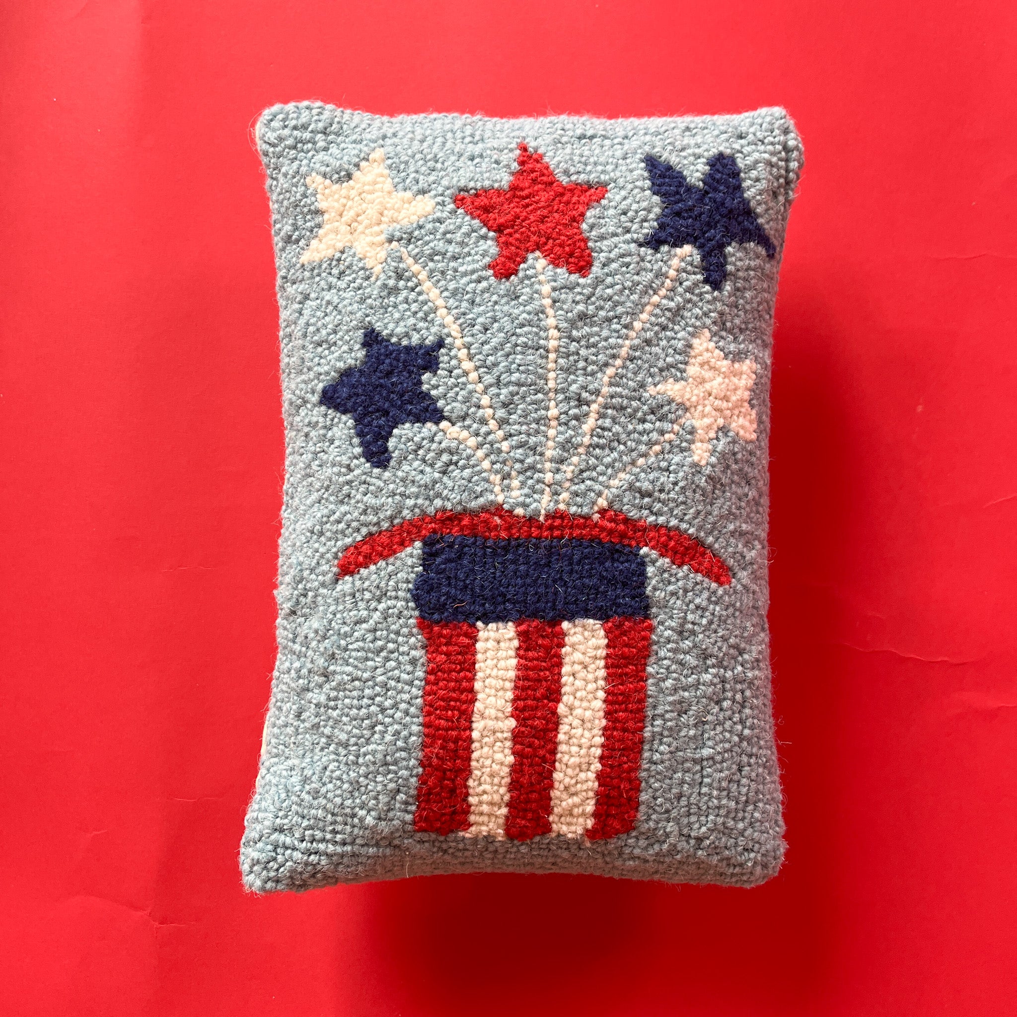Viva America! Hats off to this glorious country of ours with this whimsical, witty patriotic pillow that delivers stars and stripes forever. The perfect gift.