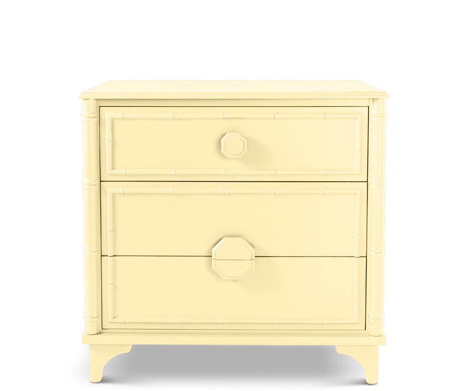 The Via Mizner Three-Drawer Chest boasts hand-carved faux bamboo flourishes, carved wood drawer pulls, and three generously proportioned drawers. Use as night tables on either side of a bed—or as extra storage in any room. We think Addison Mizner would have been proud. Available in Six Standard Finishes or specify any Benjamin Moore, Sherwin-Williams, or Farrow & Ball paint color for your own unique finish. To order this piece in a custom color, Click Here.