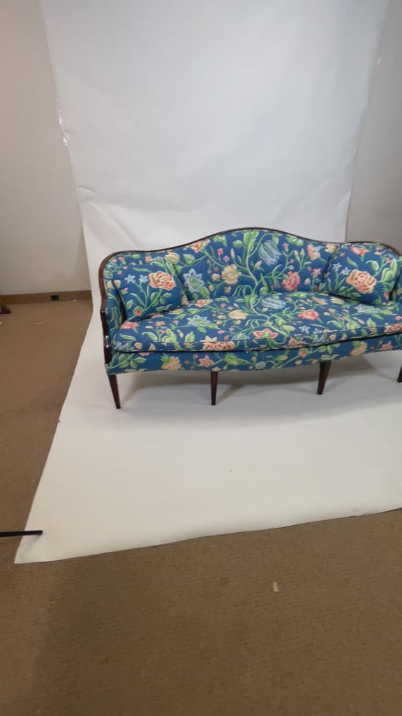 Purchased at a Palm Beach estate sale, this gorgeous lightly polished cotton floral sofa delivers quilted perfection that will most certainly banish any moody blues. Pair the little lady with the stunning vintage loveseat lavished with the same sumptuous fabric. We especially loved the beautifully tailored skirt and eyebrow back. And, oh, the scattered strawberries are perfection!