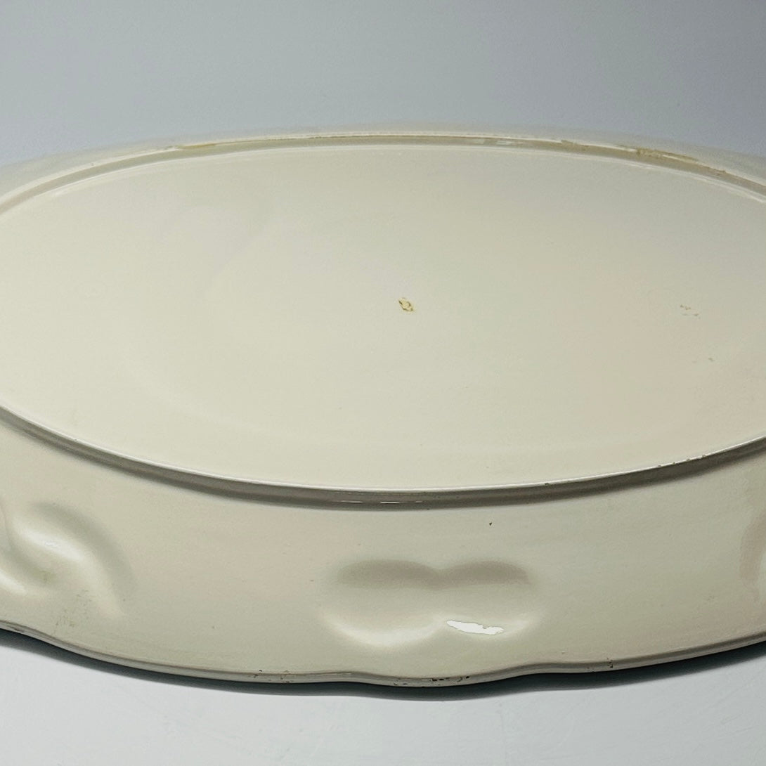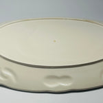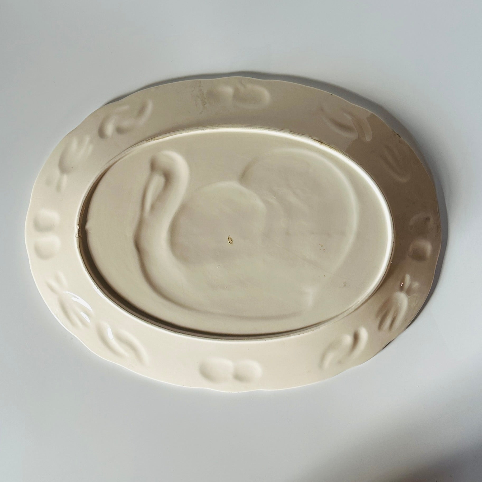 the plain white reverse side of a vintage turkey platter