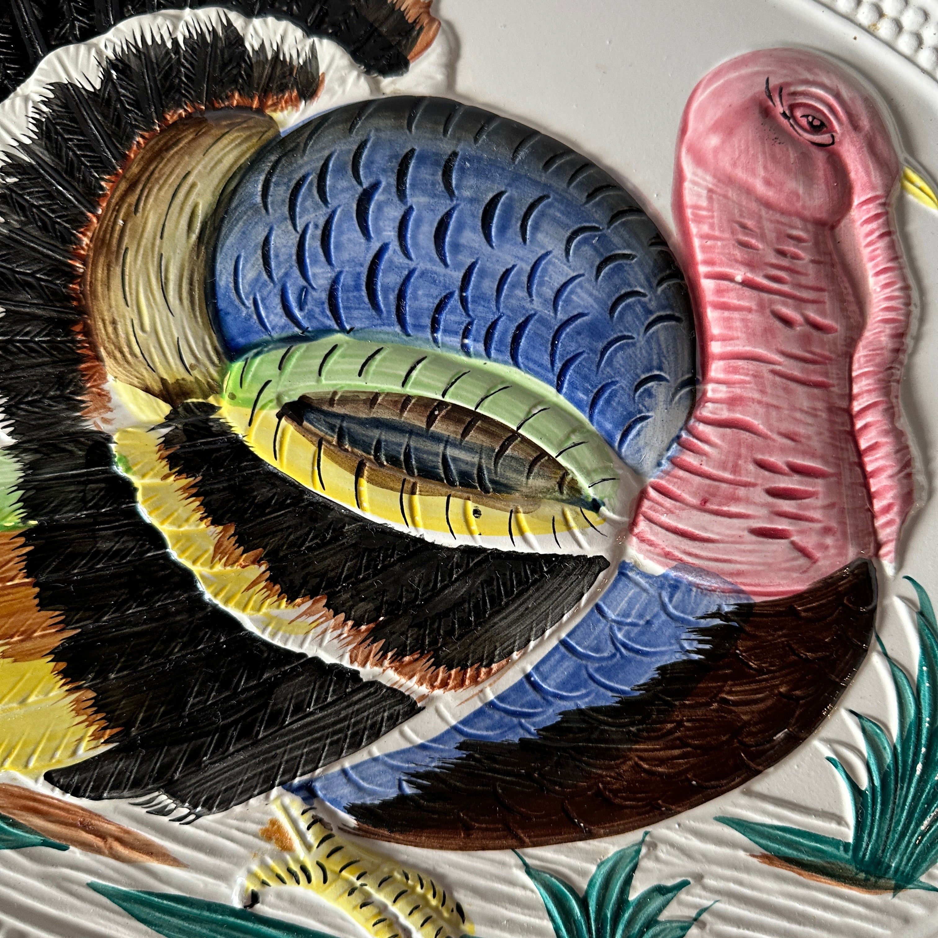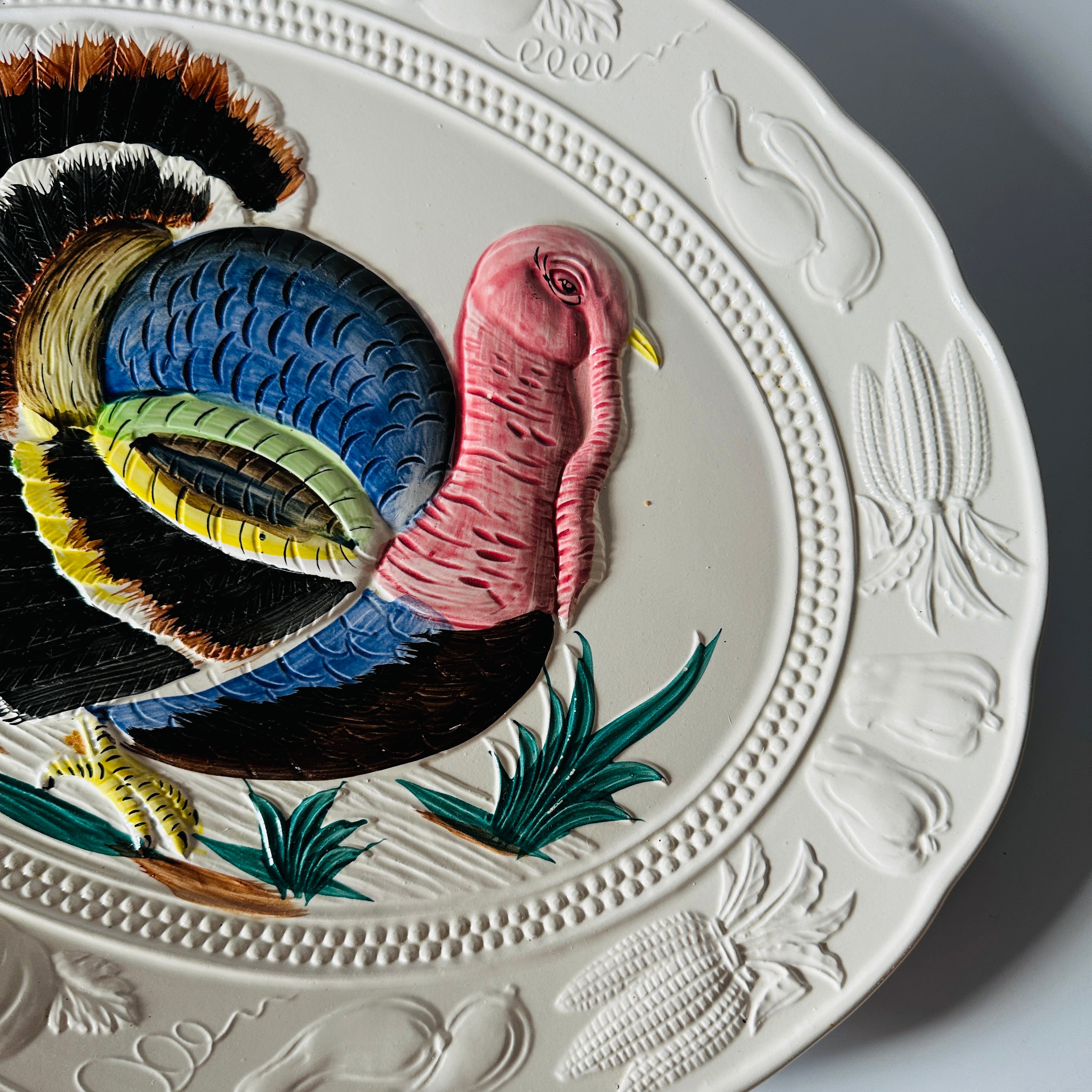 Embellished with a gorgeously colored, three-dimensional turkey, this stunning oversized vintage turkey platter is perfect for serving the Thanksgiving bird in style. Even your mother-in-law and weirdo cousin Marge will approve.