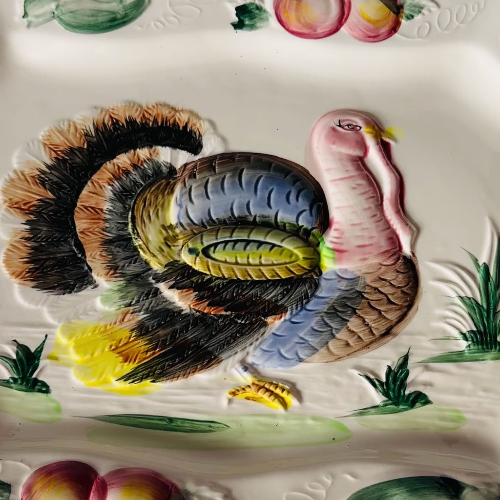 Vintage Oversized Rectangular Ceramic Turkey Platter